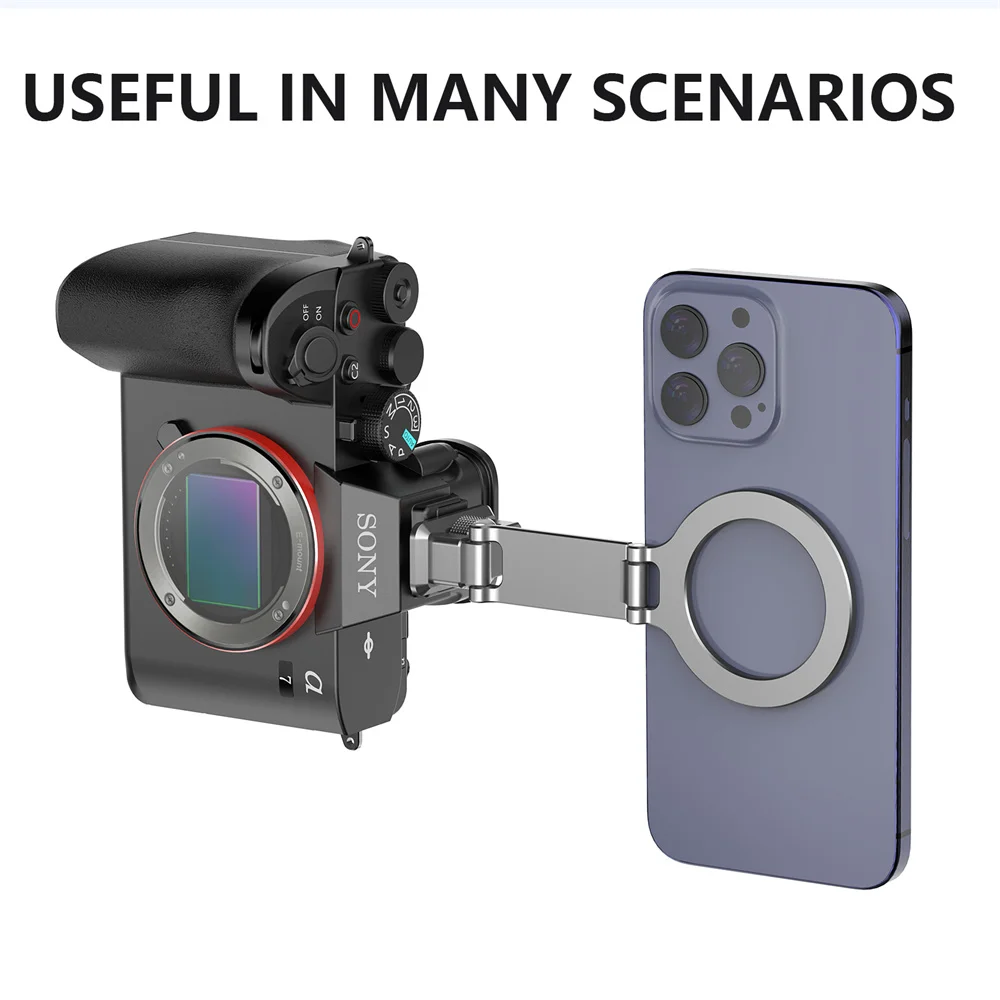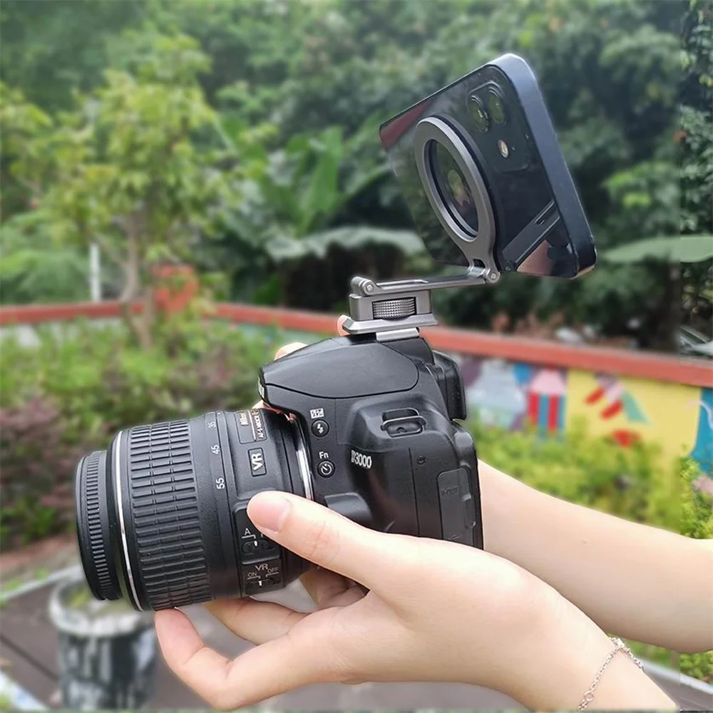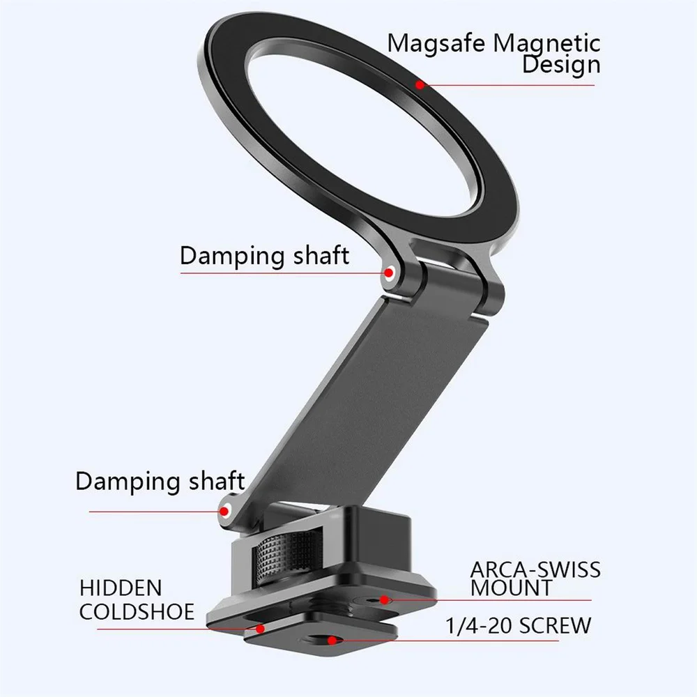 Soporte magnético para teléfono con zapata fría MagSafe de liberación rápida, soporte para teléfono móvil de aleación de aluminio y metal completo con soporte para monitor de cámara Arca-Swiss de 38 mm