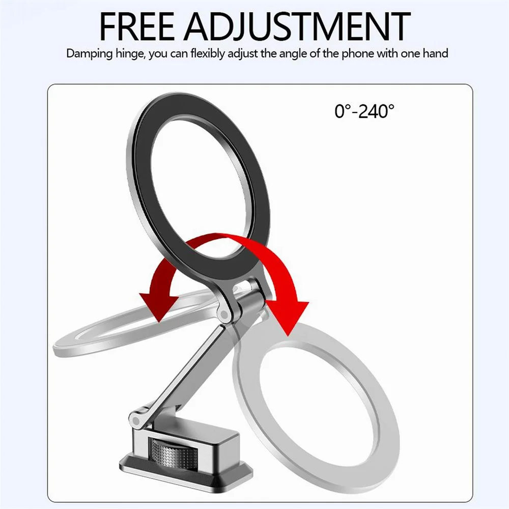 Diseñado para acomodar la serie iPhone 12/13/14/15 con una funda Magsafe, nuestro soporte para teléfono también incluye un anillo magnético a juego para usar con otros teléfonos móviles.