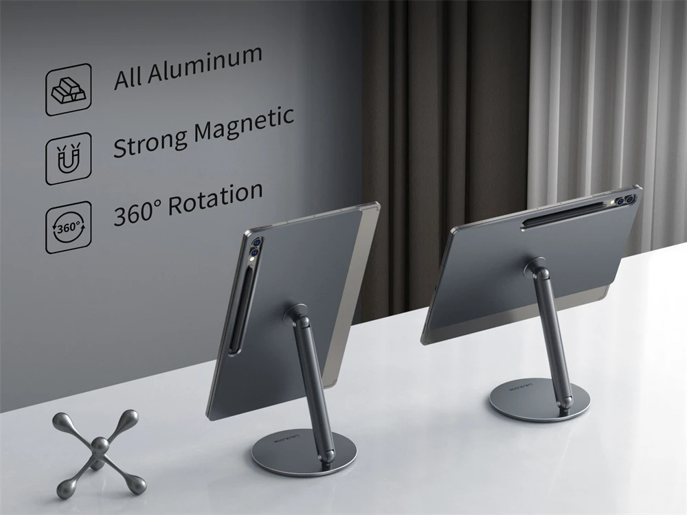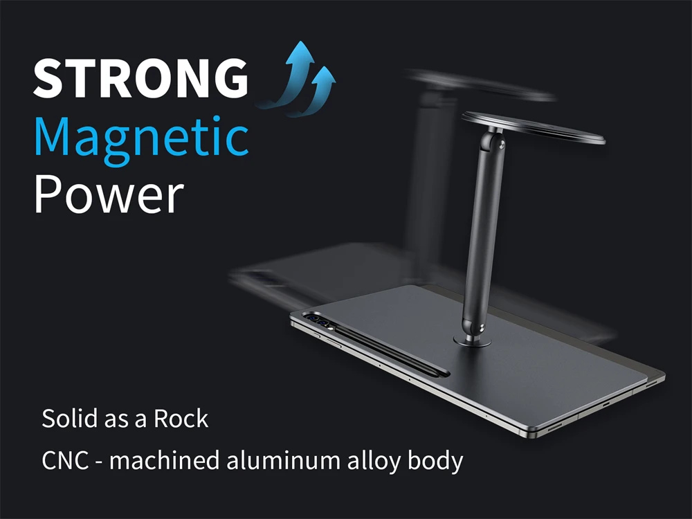 Actualización del soporte para tableta PC:Especialmente diseñado para Samsung Galaxy Tab.Aluminio refinado con diseño ajustable, mantiene la tableta en su lugar de forma segura con un rendimiento magnético mágico.