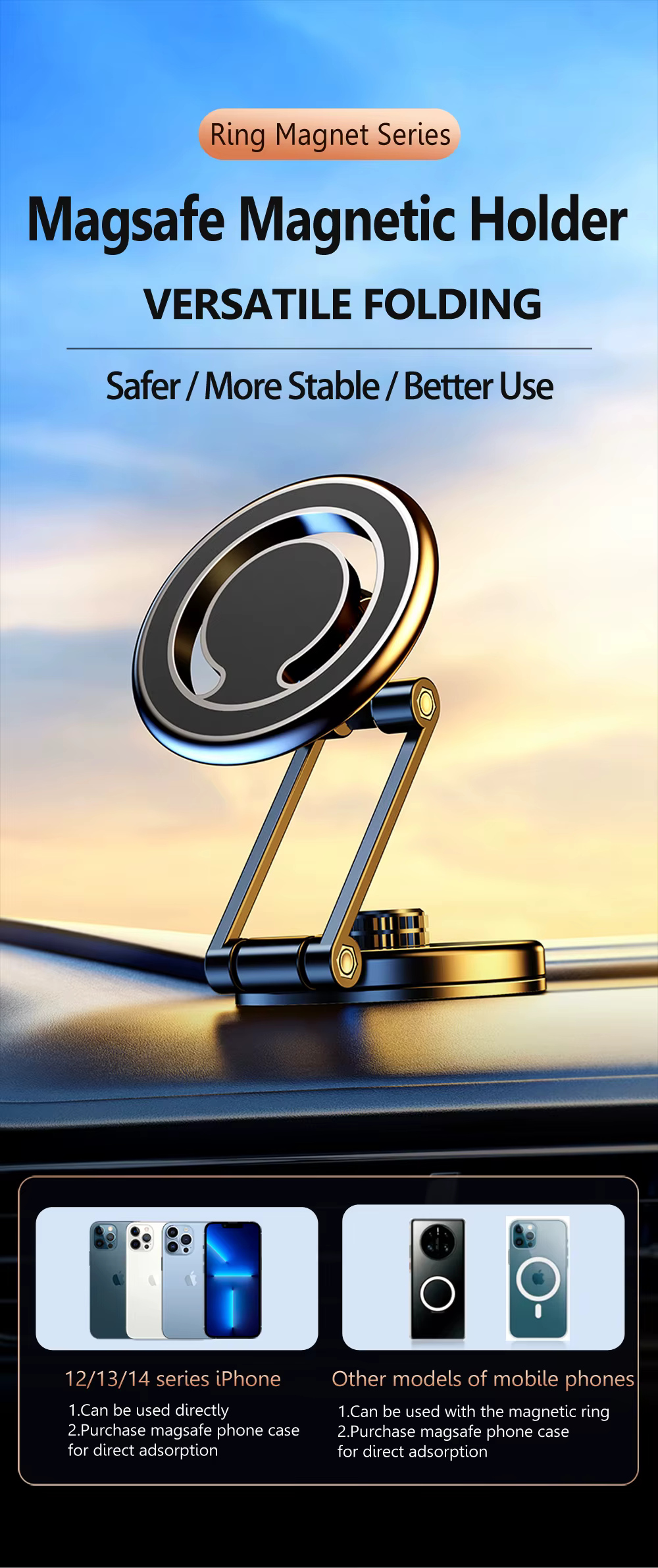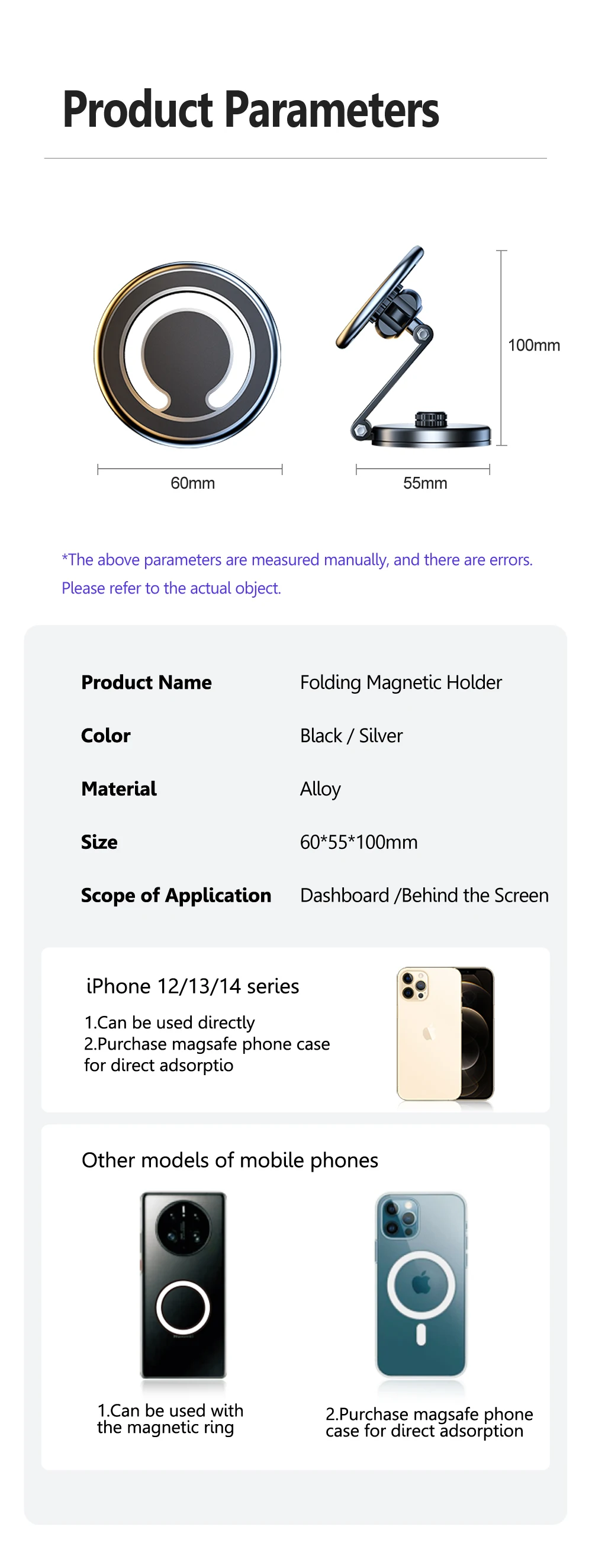 Comprar Soporte magnético oculto plegable para teléfono de coche, pantalla de Control Central, Magsafe, soporte plegable para iPhone 14, 13, Tesla Model3, X, Y, S