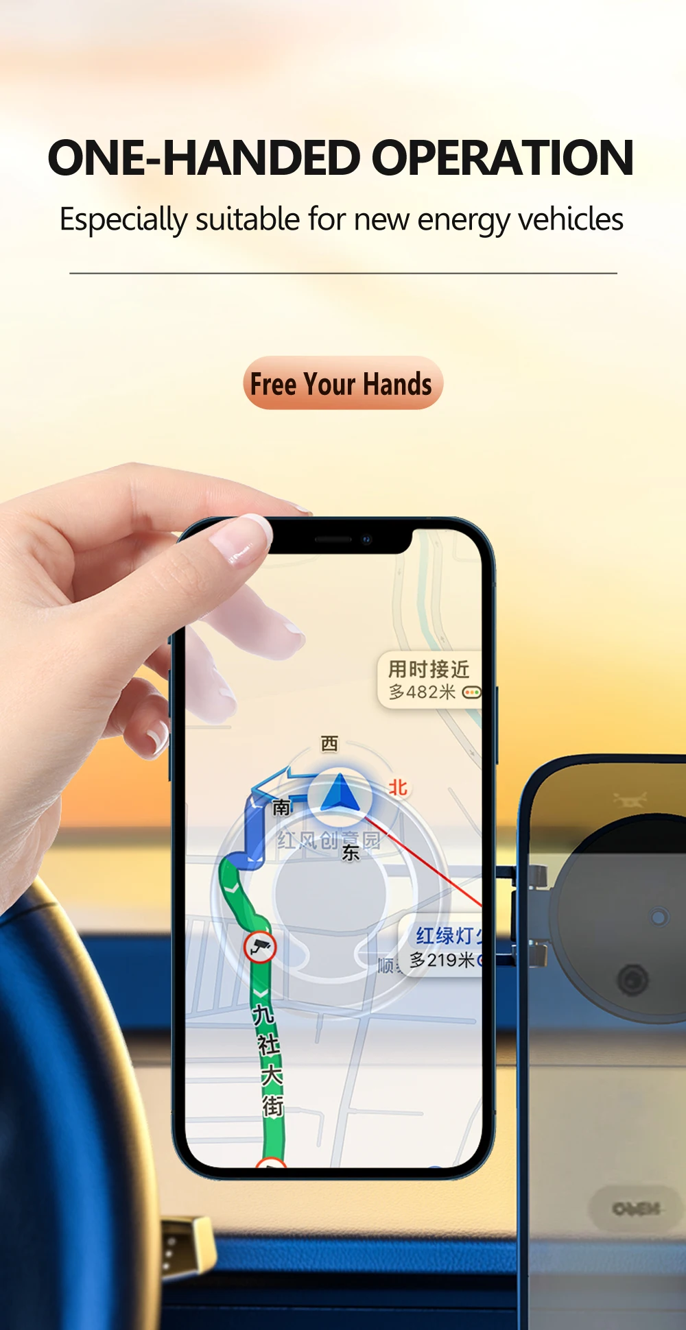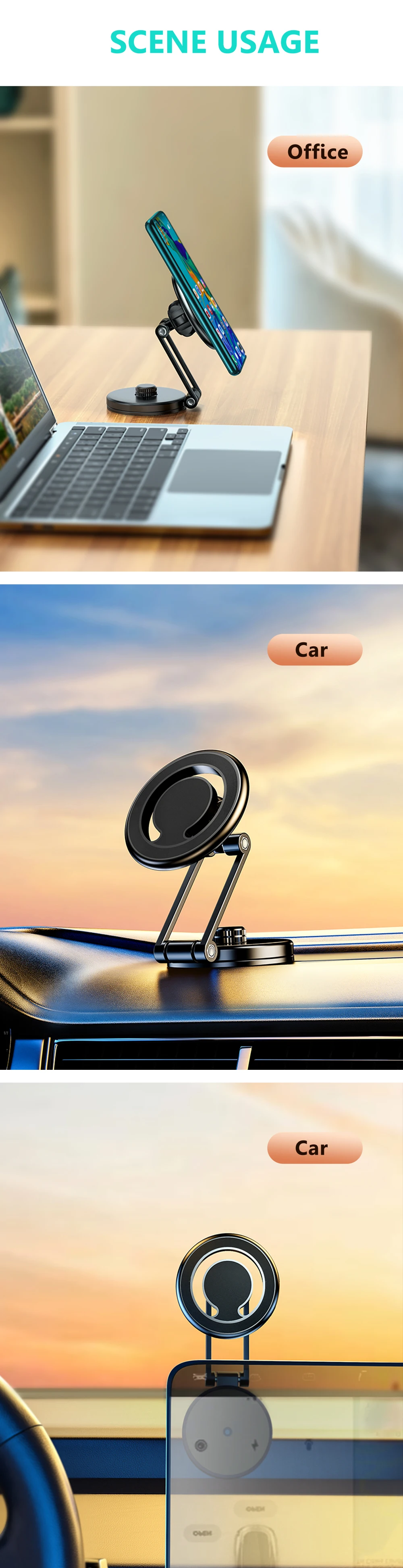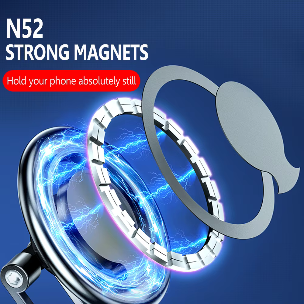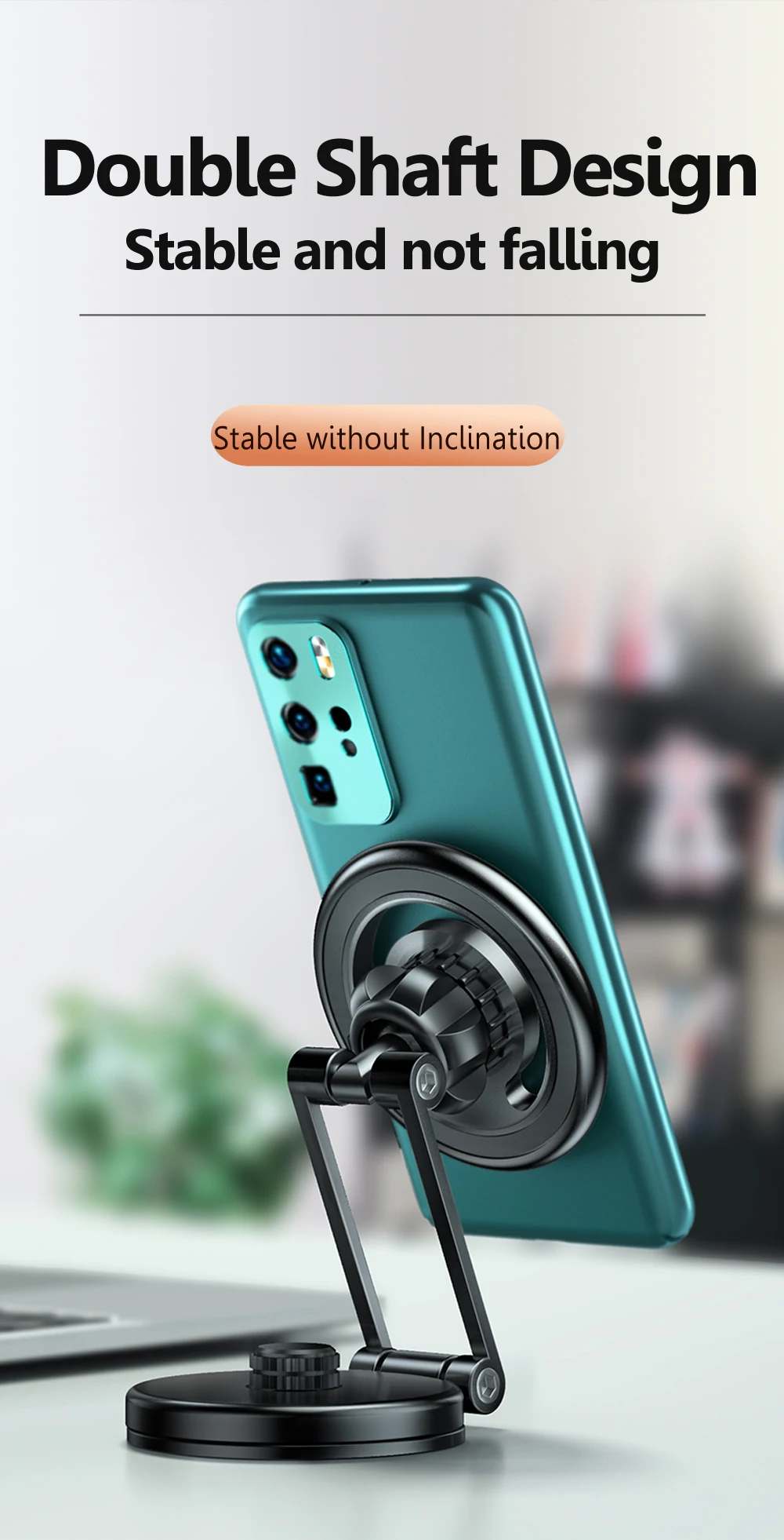 Un soporte de calidad, adherido con cinta de doble cara, que gira hacia diferentes direcciones.