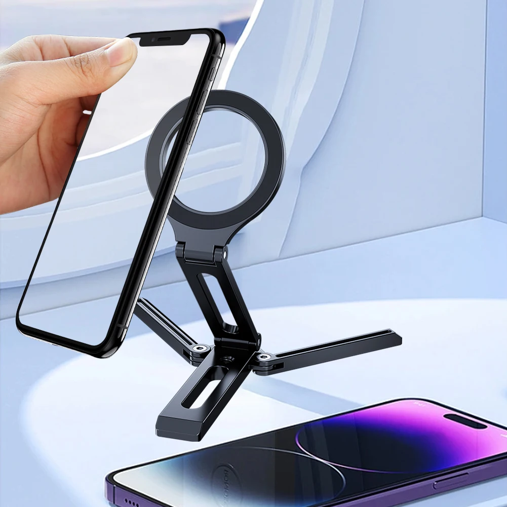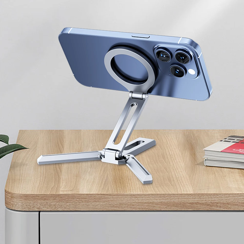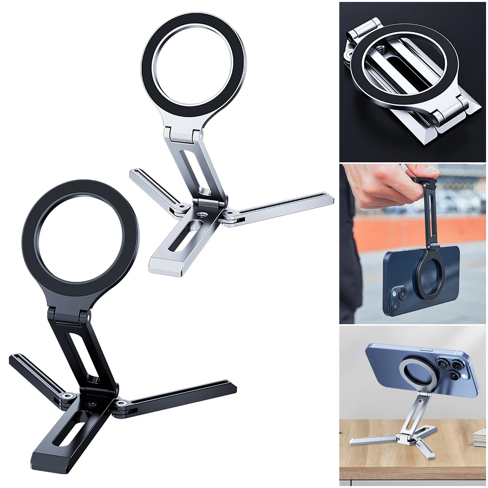 Soporte magnético plegable para teléfono, soporte de escritorio para teléfono inteligente de aleación de aluminio, soporte portátil multifuncional para teléfono de escritorio para teléfono móvil, grabación de vídeo y viajes