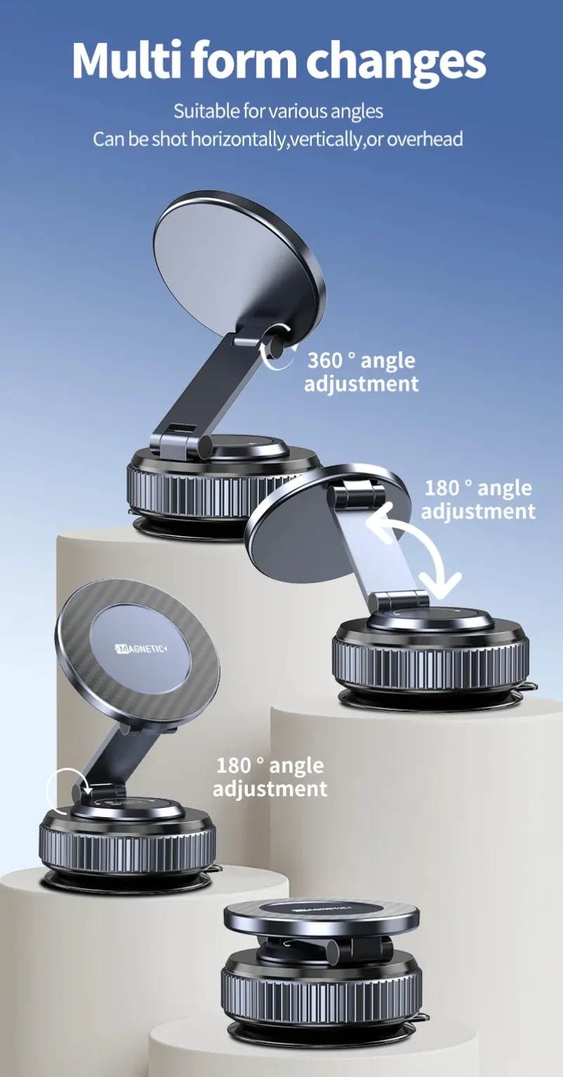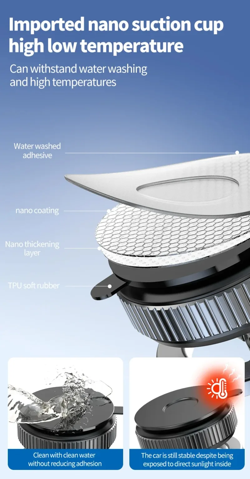 3.Opciones de montaje duales: viene con una nano ventosa Dashborad y una base de succión al vacío.