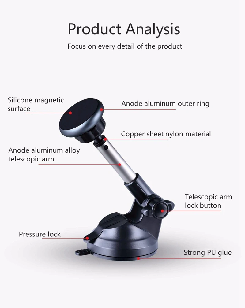 Comprar Soporte magnético de teléfono para coche, accesorio Universal para salpicadero de coche, parabrisas, rotación de 360 grados, brazo telescópico de Metal, soporte de teléfono para Smartphone
