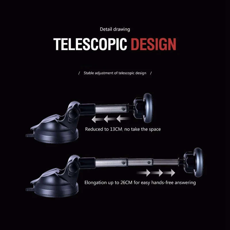Comprar Soporte magnético de teléfono para coche, accesorio Universal para salpicadero de coche, parabrisas, rotación de 360 grados, brazo telescópico de Metal, soporte de teléfono para Smartphone
