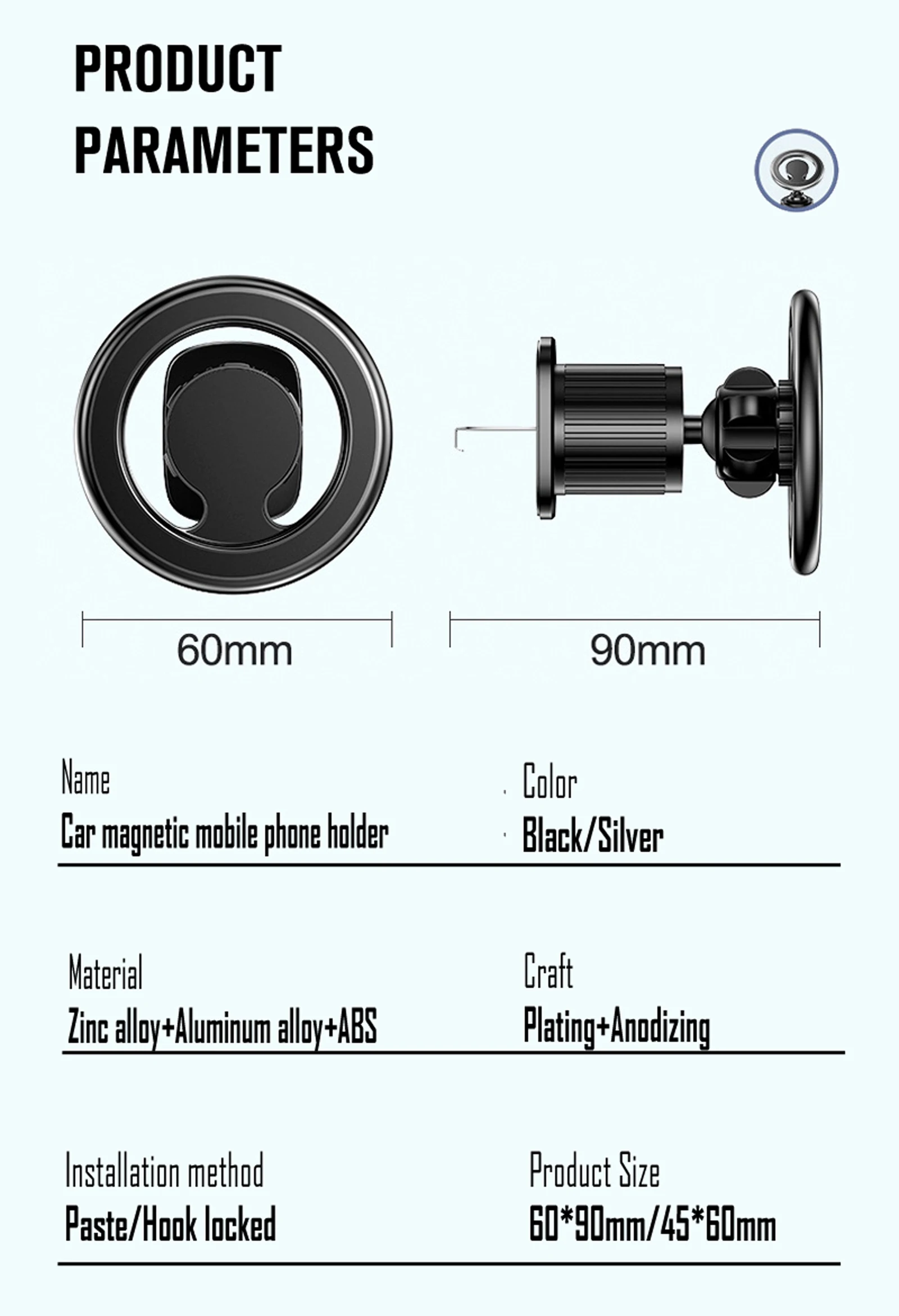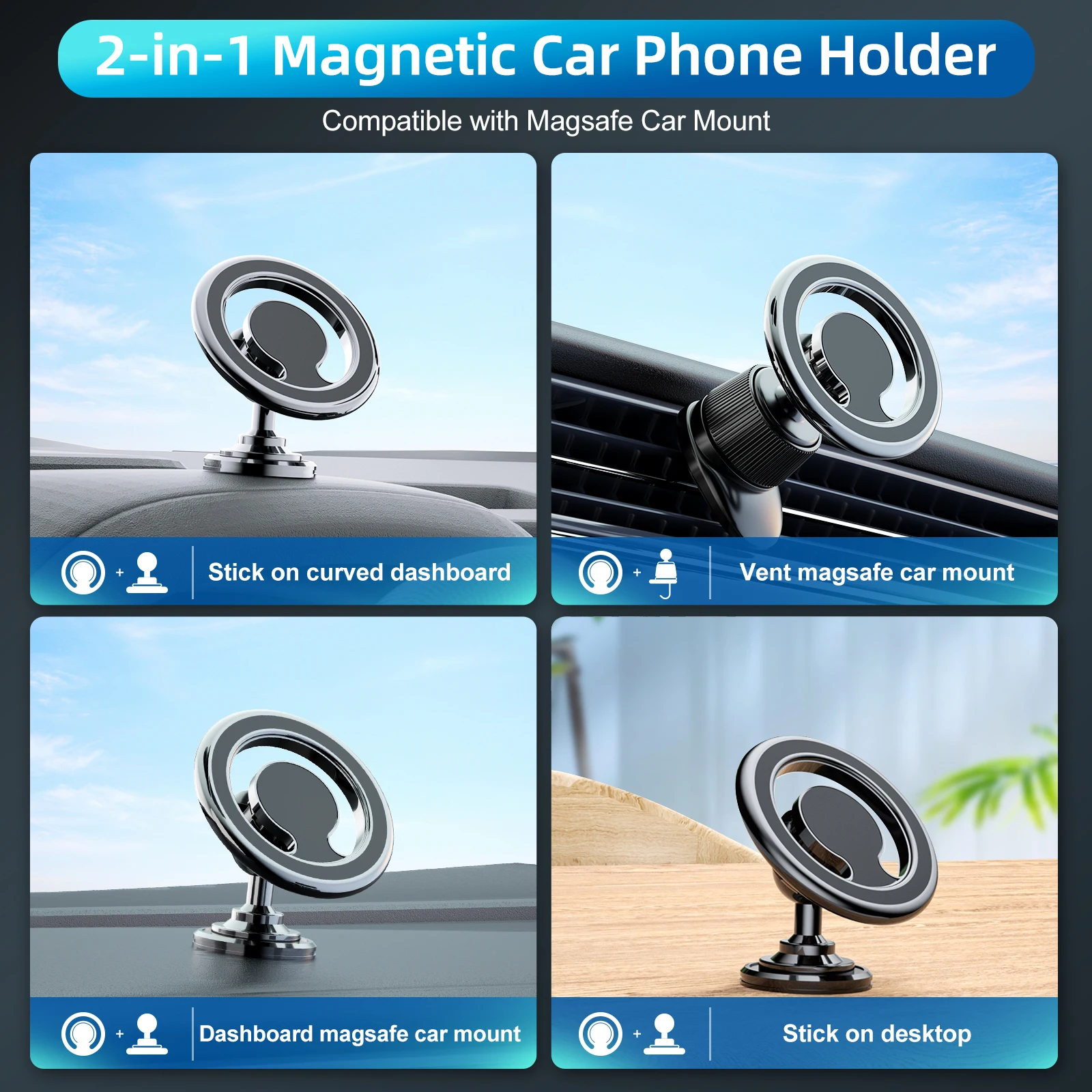 Soporte magnético de teléfono para coche, anillo Magsafe para salpicadero, montaje de salida de aire, 2 estilos, imán fuerte, GPS, para iPhone, Samsung y Xiaomi