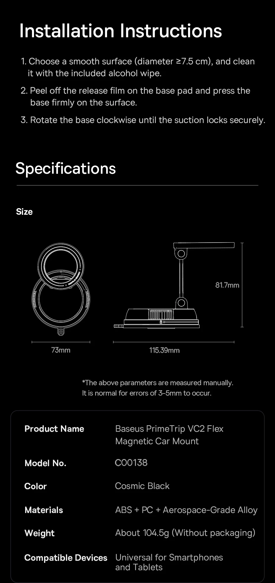 Soporte magnético para coche Bascus PrimeTrip VC2 Flex