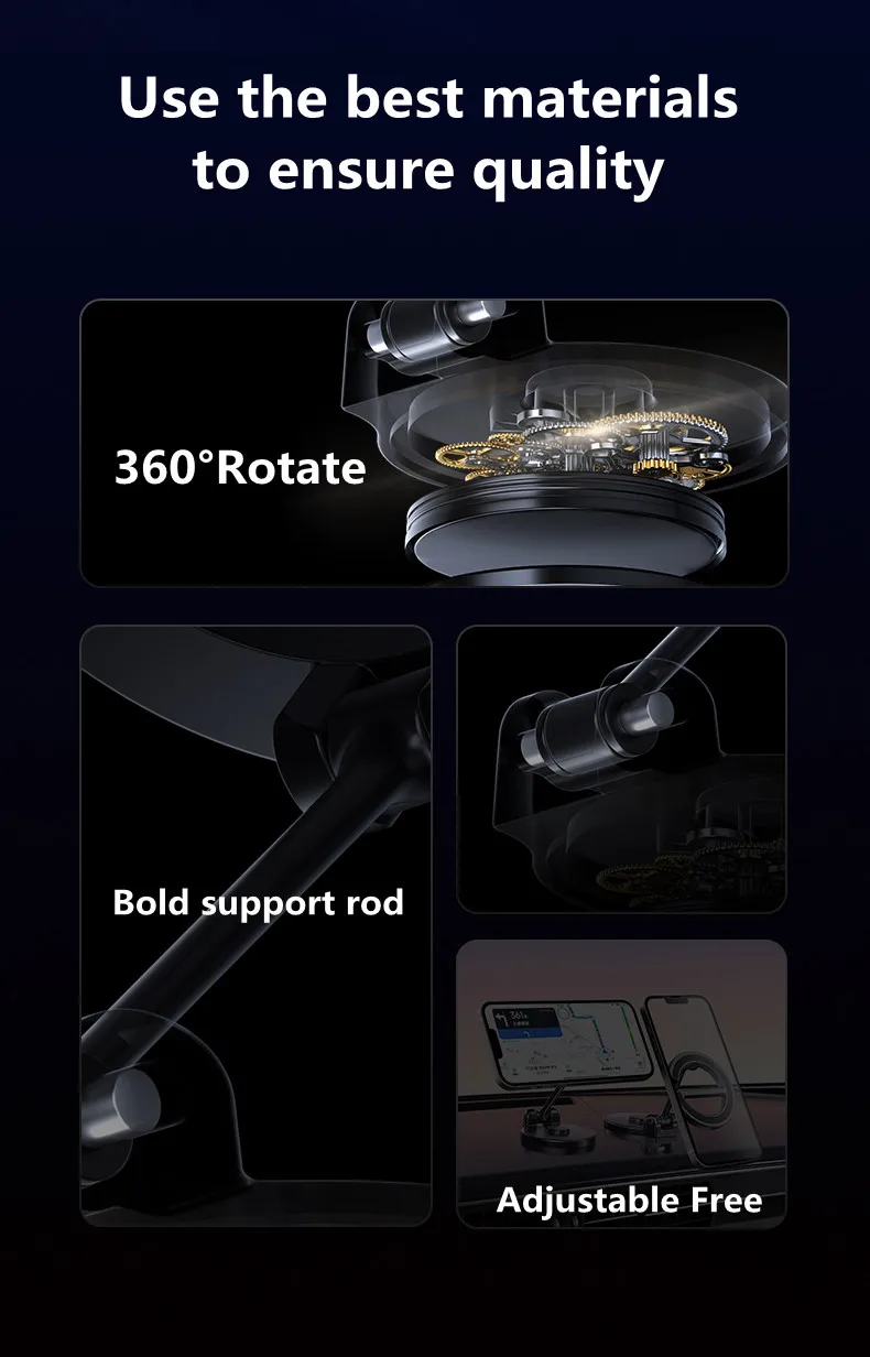 * Uso directo Macsafe mejorado para la serie iPhone 12-15 y Universal para otros teléfonos (use las placas magnéticas ubicadas en la parte posterior de sus teléfonos/GPS, no las use en el soporte del teléfono del automóvil)