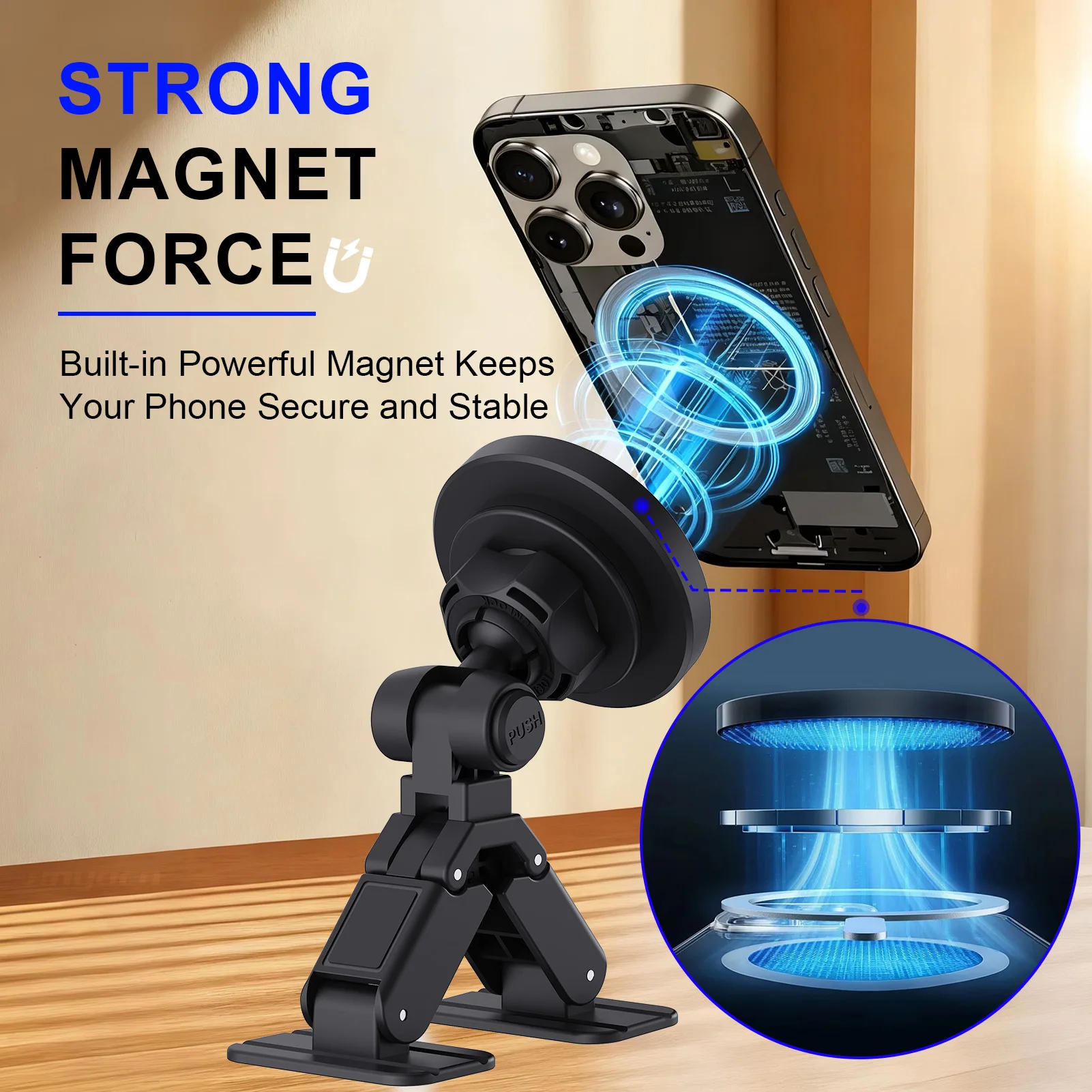 Soporte magnético para teléfono de coche, soporte adhesivo fuerte para consola central para sujeción segura, soporte ajustable para móvil para manos libres