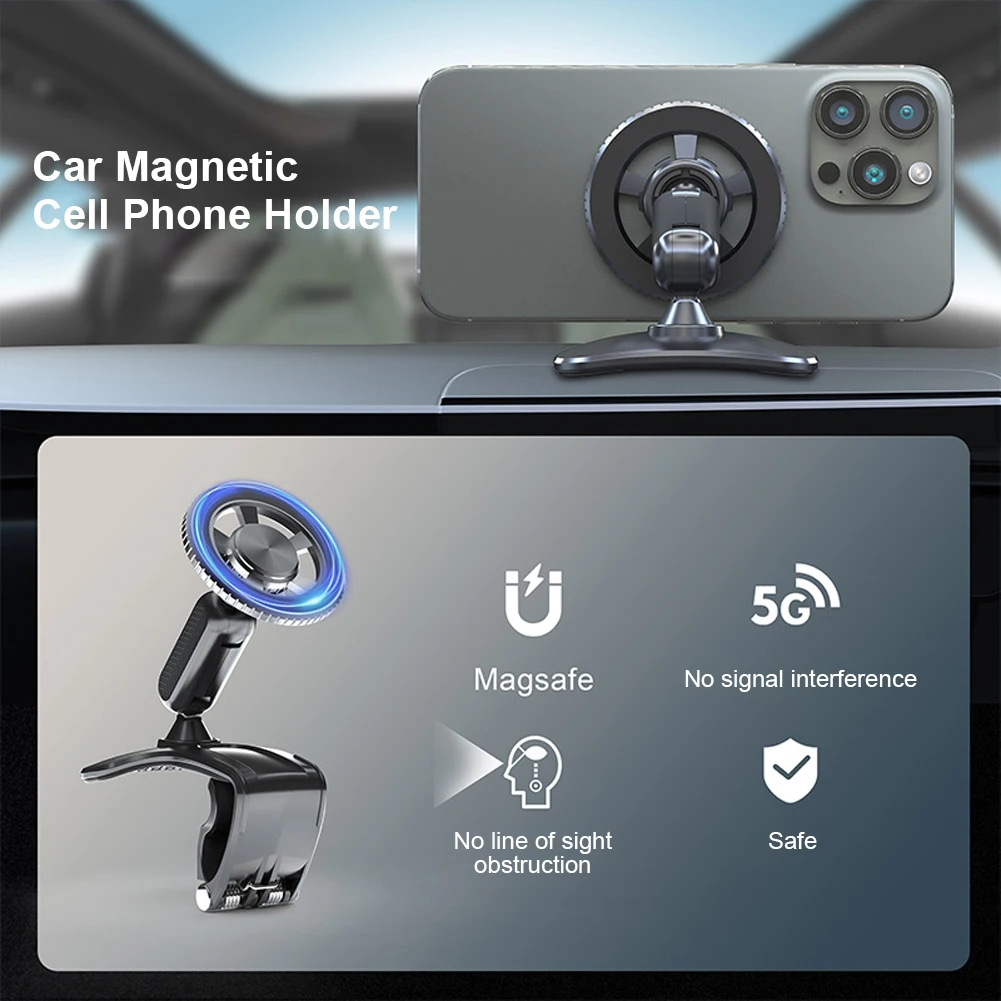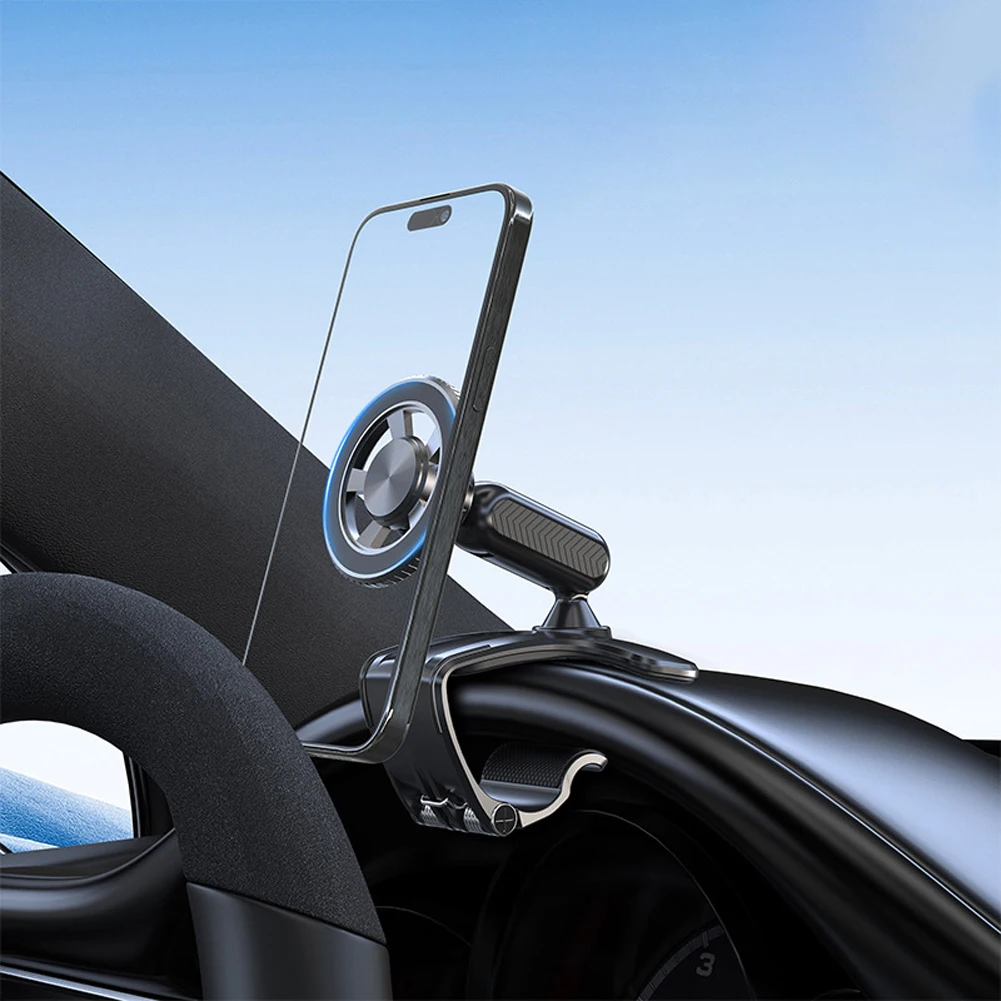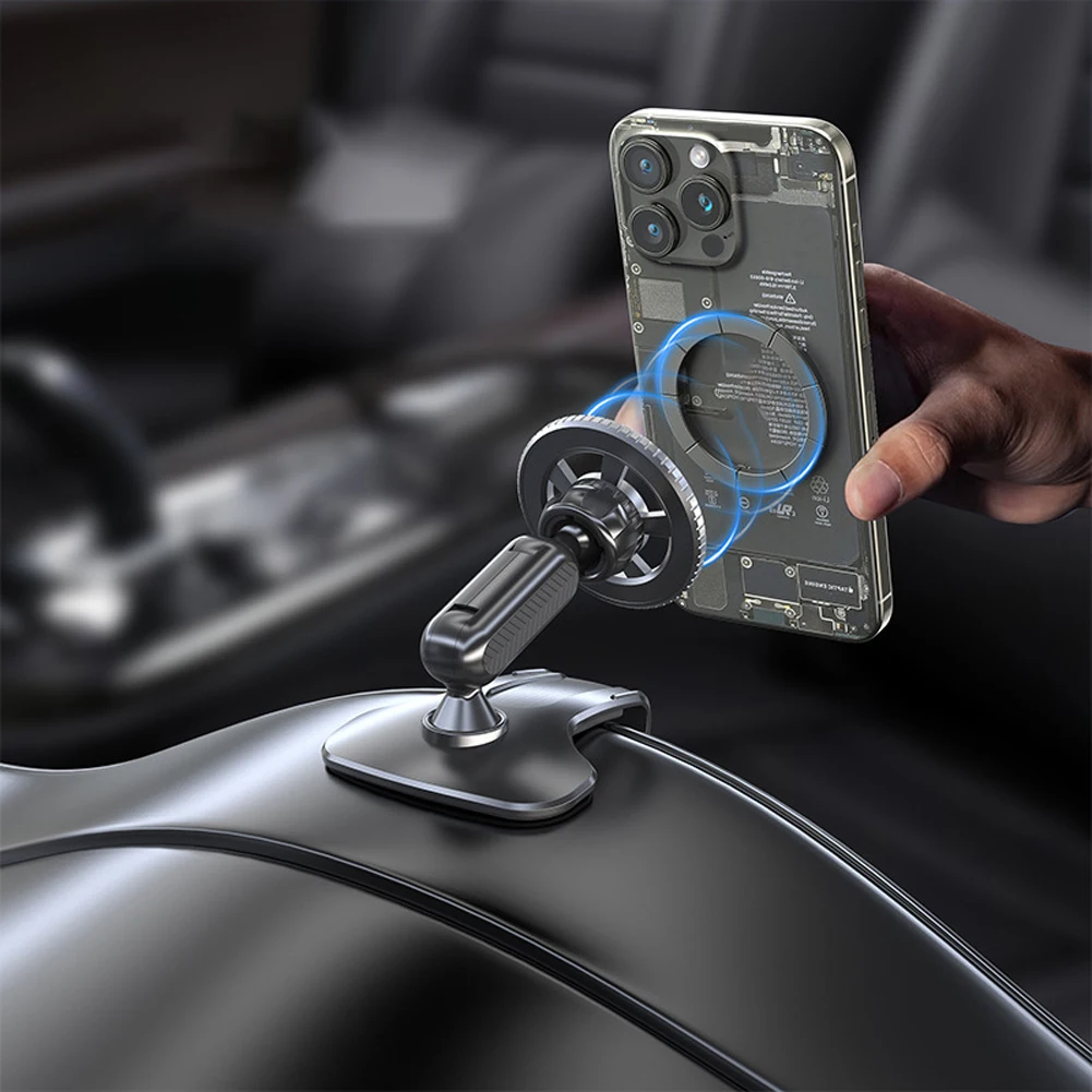 1.Accesorio magnético seguro:Con un fuerte soporte magnético para teléfono para automóvil, sujeta firmemente su teléfono incluso en carreteras con baches, lo que permite una colocación y extracción rápidas con una sola mano.