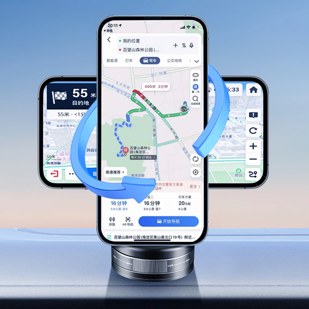 2.Ángulos ajustables:El soporte magnético para teléfono para automóvil con adsorción al vacío mejorado ofrece ajustes sin problemas de 360 grados.Con su varilla de soporte giratoria de aleación de zinc, cumple con una variedad de ángulos de visión necesarios para la navegación mientras conduce.