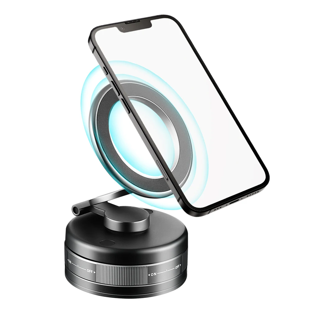 2.Ángulos ajustables:El soporte magnético para teléfono para automóvil con adsorción al vacío mejorado ofrece ajustes sin problemas de 360 grados.Con su varilla de soporte giratoria de aleación de zinc, cumple con una variedad de ángulos de visión necesarios para la navegación mientras conduce.