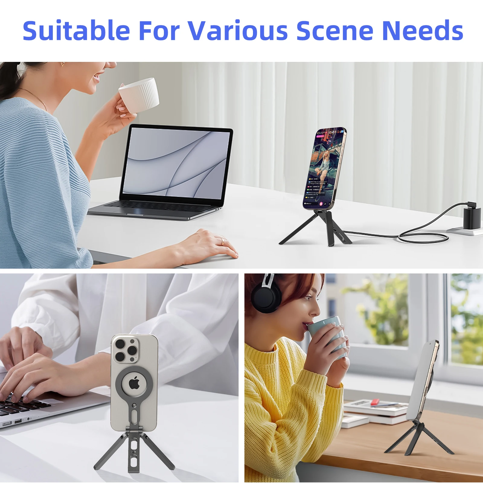 Soporte magnético para teléfono con Magsafe para iPhone serie 16, 15, 14, 13, 12, soporte plegable para teléfono de bolsillo de escritorio, trípode para viaje