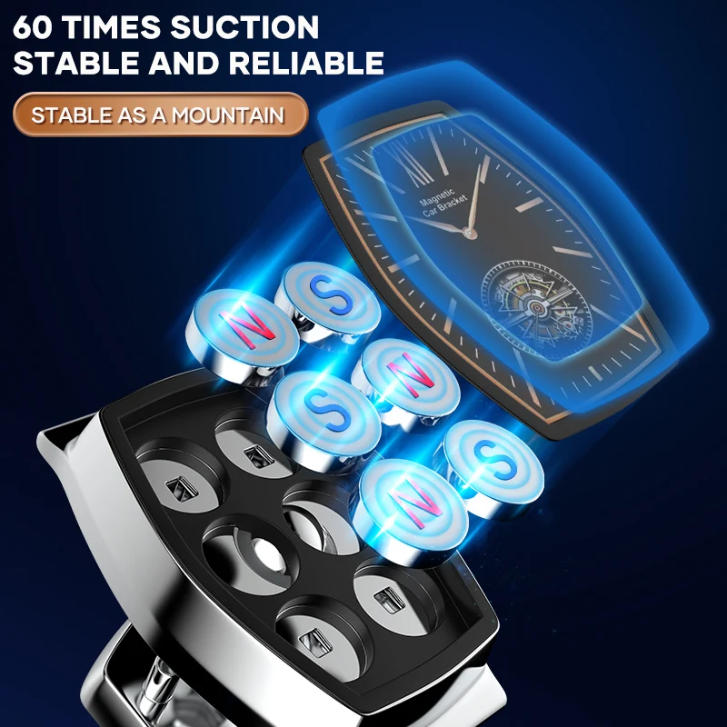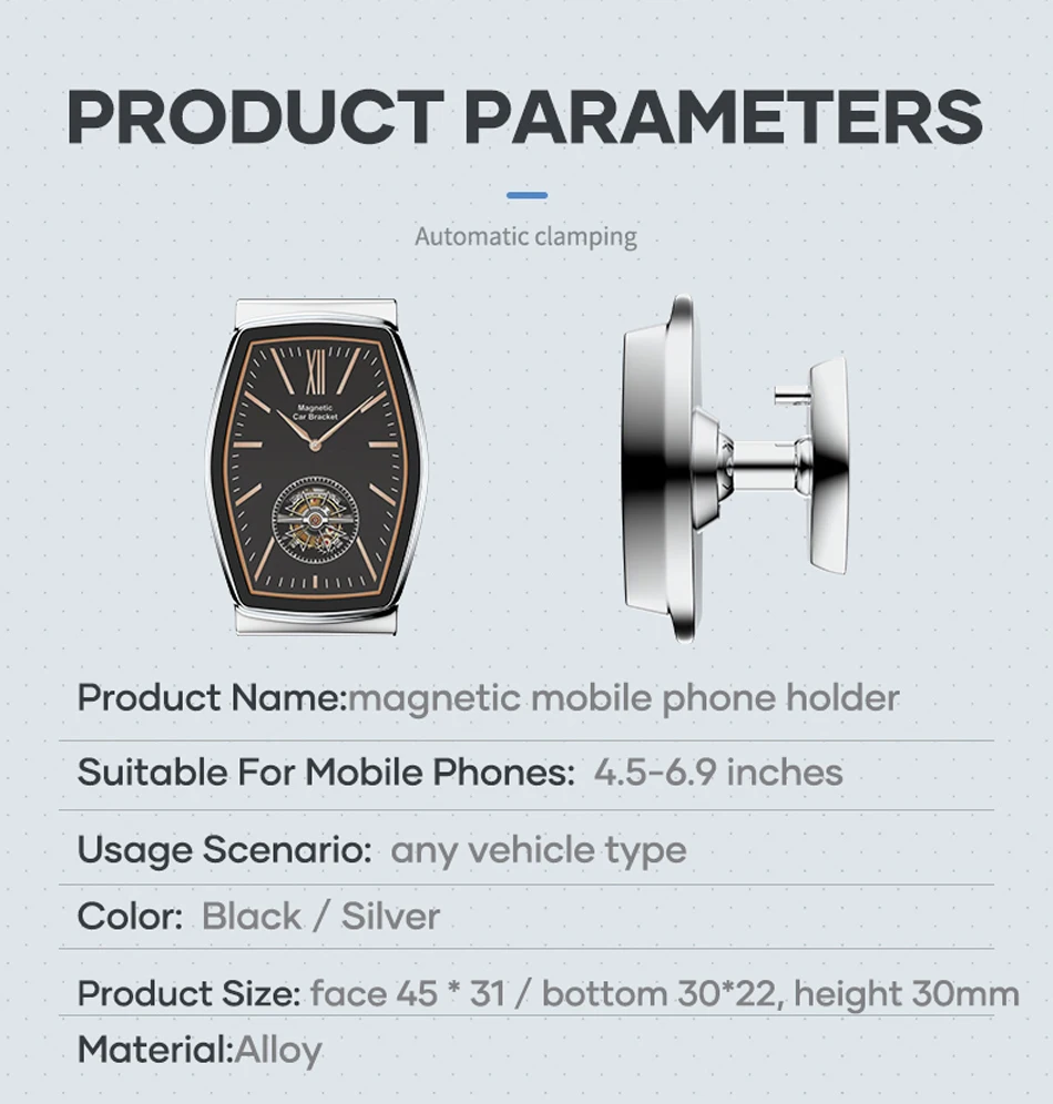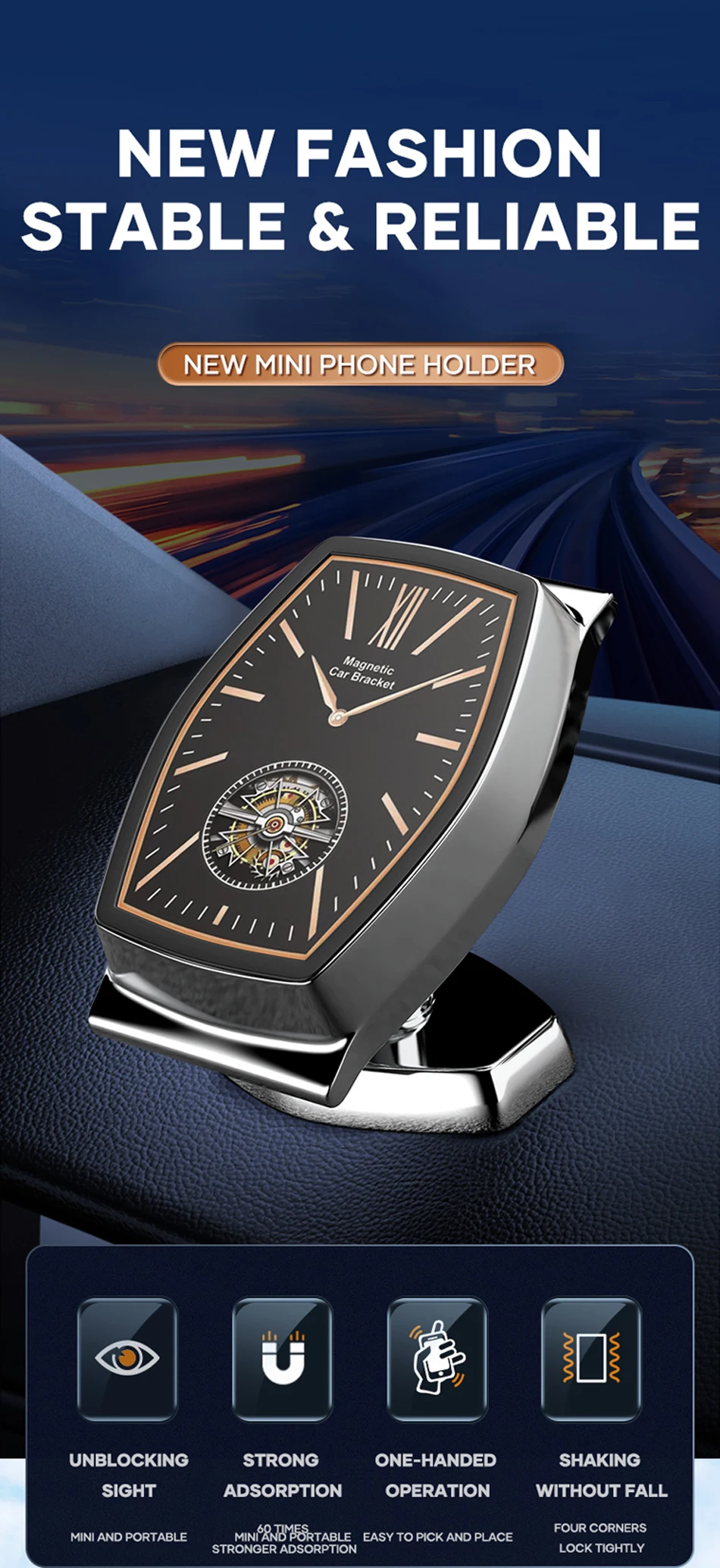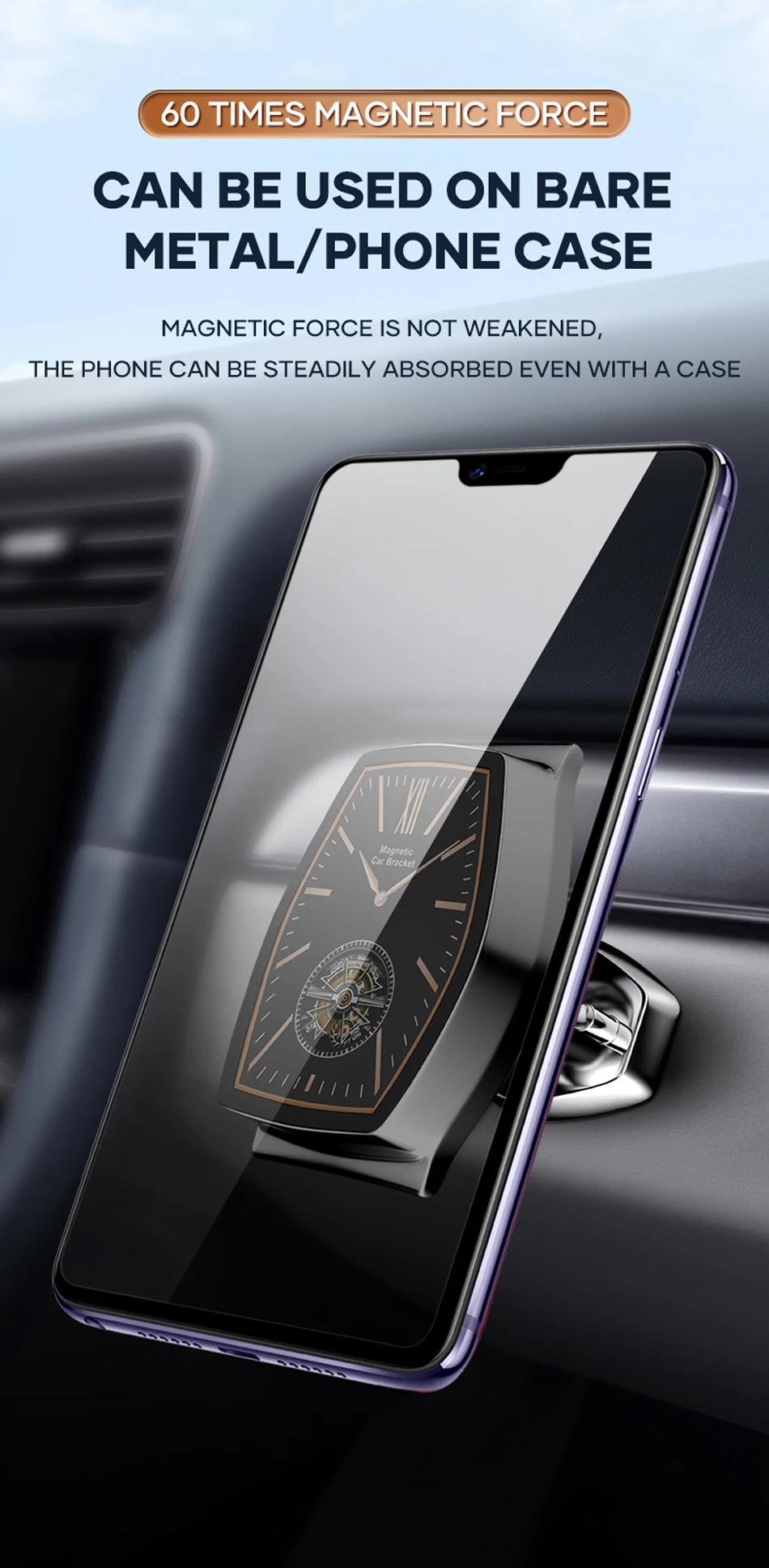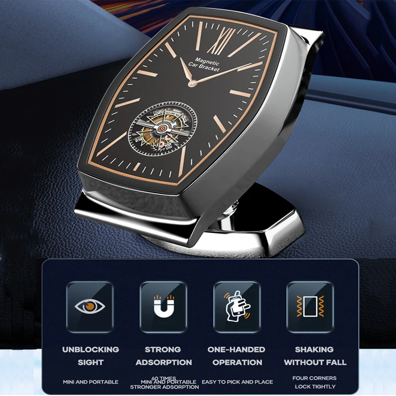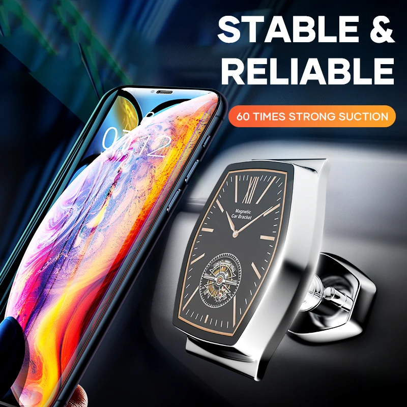 Comprar Soporte magnético de teléfono móvil para coche, accesorio de lujo con patrón de reloj, bobinadora de Cable, imán de Metal plateado, soporte de pegatina para coche
