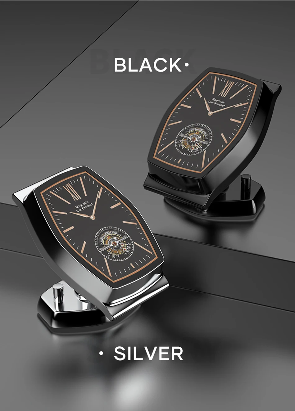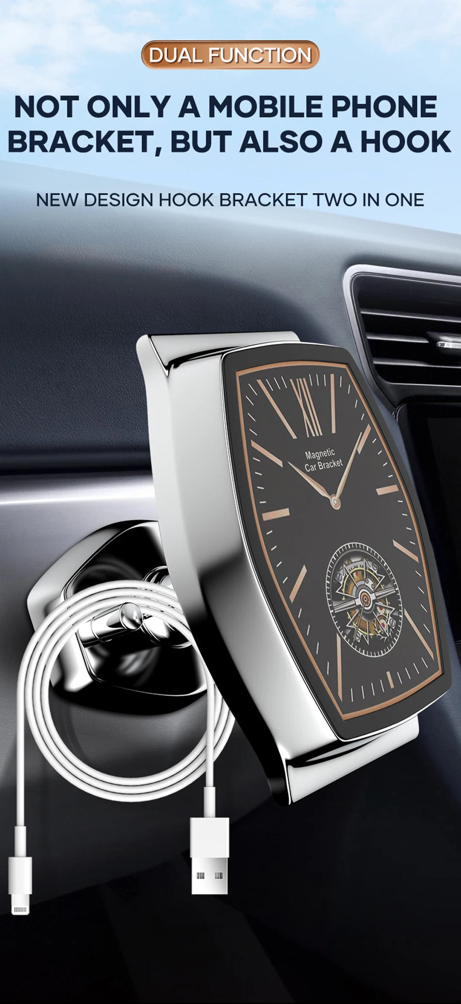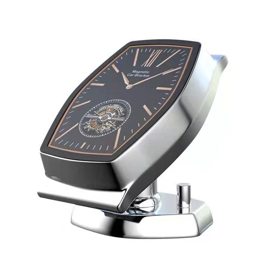 Soporte magnético de teléfono móvil para coche, accesorio de lujo con patrón de reloj, bobinadora de Cable, imán de Metal plateado, soporte de pegatina para coche