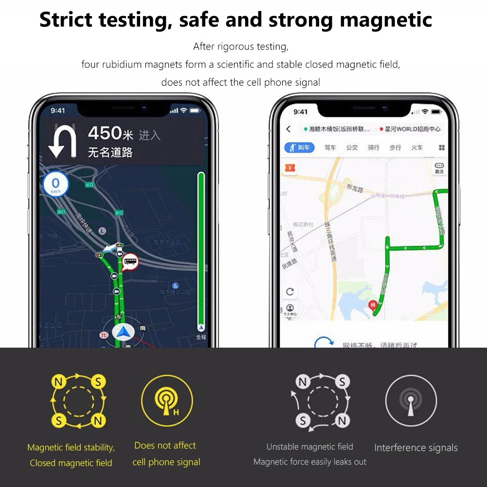 3. Fijado de forma segura:Con cuatro potentes imanes de tierras raras integrados internamente, el soporte proporciona una fijación segura a su teléfono, incluso en carreteras con baches. El adhesivo fuerte es lo suficientemente estable como para soportar cualquier terreno sin perder agarre.