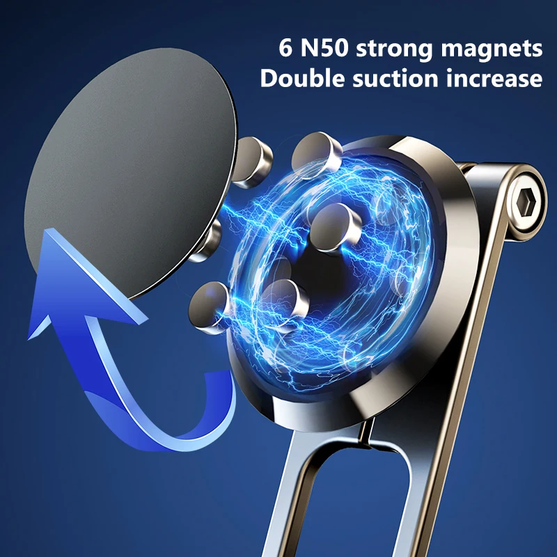 3. Potente montaje magnético:Equipado con 6 imanes magnéticos fuertes N50 y una nueva estructura de engranaje, este soporte para teléfono garantiza una adsorción estable incluso en carreteras con baches, lo que le permite operar su teléfono sin problemas mientras conduce.