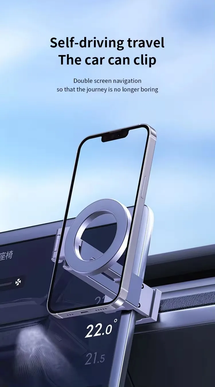 2. Fuerte accesorio magnético: Experimente la confianza de nuestro soporte de teléfono de avión manos libres, equipado con un potente imán circular N52 para un agarre seguro y confiable. Diseñado para evitar caídas y proteger contra daños en la pantalla, es compatible con modelos de iPhone y viene con un anillo magnético para otros dispositivos.