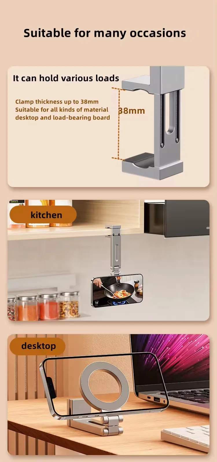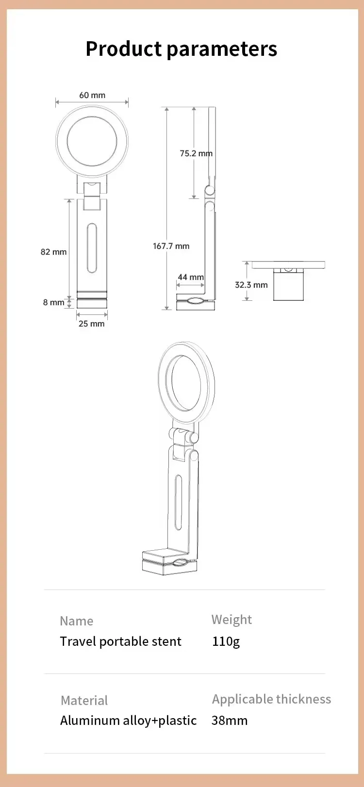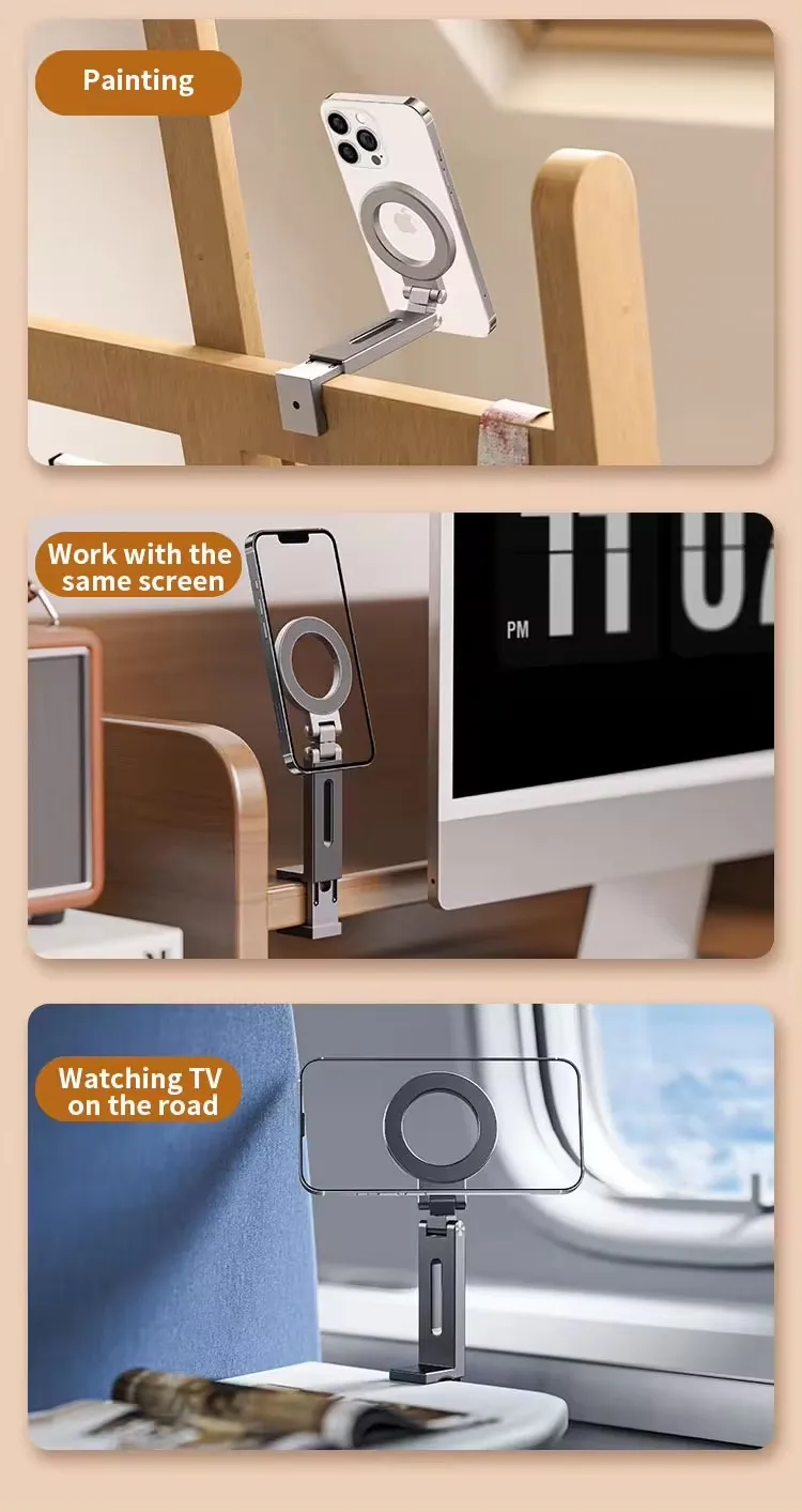 5. Amplia aplicabilidad: Mantenga nuestro soporte de teléfono de escritorio de viaje plegable en su bolso o bolsillo para un acceso sin esfuerzo. Ya sea en casa, en la oficina o de viaje, se adhiere fácilmente a varias superficies, asegurando que su teléfono esté siempre listo.