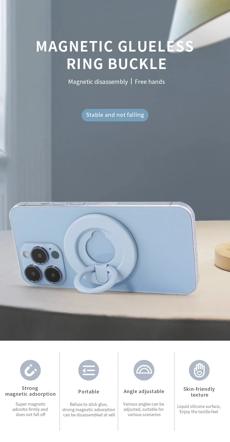 Soporte para teléfono Soporte magnético para anillo de dedo de coche Extraíble Smartphone Grip Kickstand Soporte portátil para Iphone 11 12 Ipad TabletCaracterística: