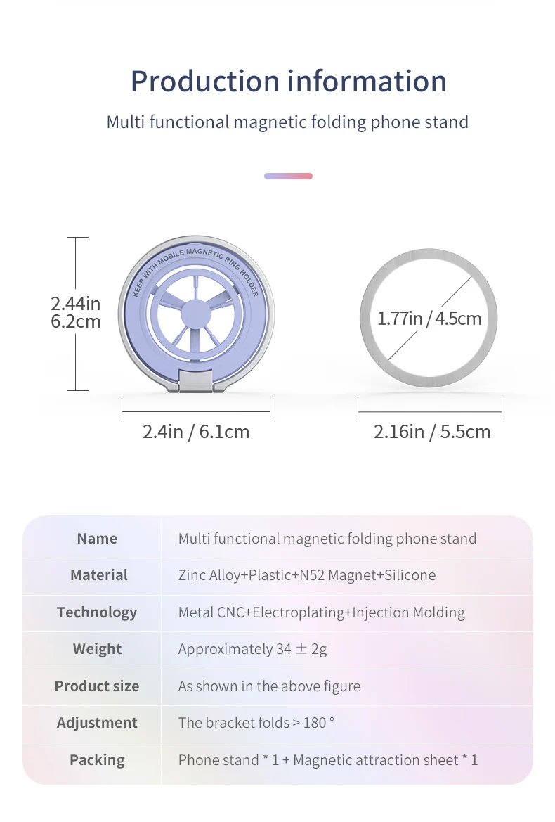 Soporte magnético para teléfono portátil para anillo y soporte Magsafe 2 en 1 soporte de escritorio plegable de Metal Universal para teléfono inteligente