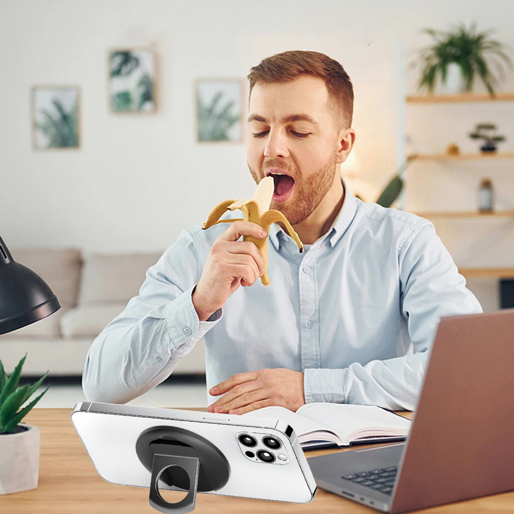 3. Diseño de succión magnética:El soporte magnético de succión para teléfono móvil puede ayudarle a liberar sus manos. Se puede conectar al iPhone por fuerza magnética. Puede instalar fácilmente su teléfono móvil y usarlo como cámara web. Se puede utilizar como anillo o soporte para ver vídeos o navegar por otro contenido.