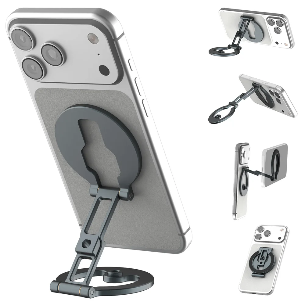 Soporte magnético ultrafino de doble cara para teléfono con orificio para tornillo de 1/4'' 360° Soporte plegable de rotación para iPhone serie 16/15/14/ 13/12
