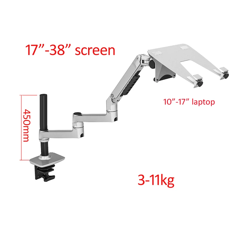 Comprar Soporte mecánico DL-8013LP para ordenador portátil, base de 3 brazos con abrazadera de columna, soporte de escritorio de 3-11kg, 10-17 pulgadas, 100x100
