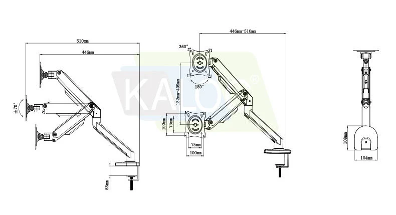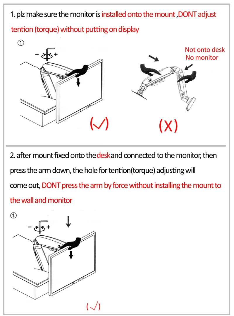 Carga: 2-9kg (asegúrese de que su pantalla esté dentro de este rango, o el resorte de gas del soporte no podría funcionar)