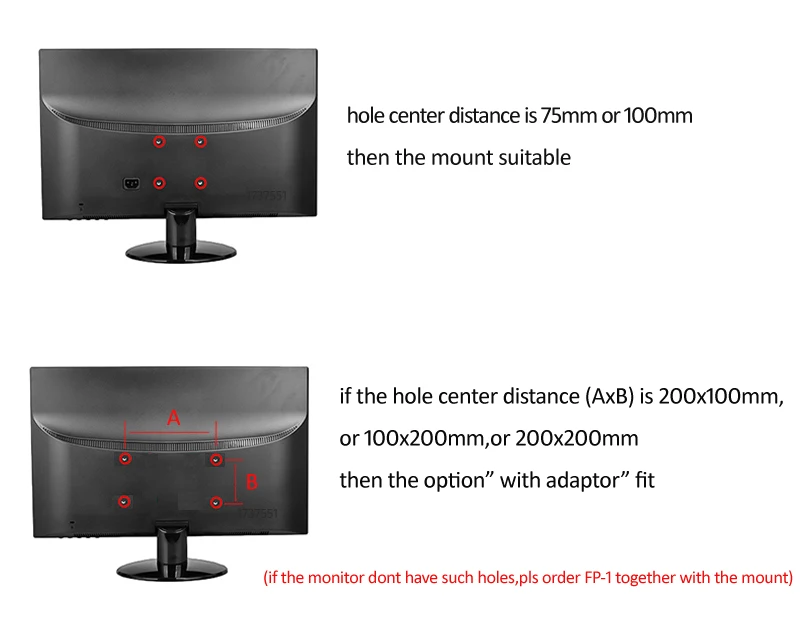 VESA : 75/100MM (Con adaptador, el tamaño VESA se expande a 200x100/100x200/200x200mm)