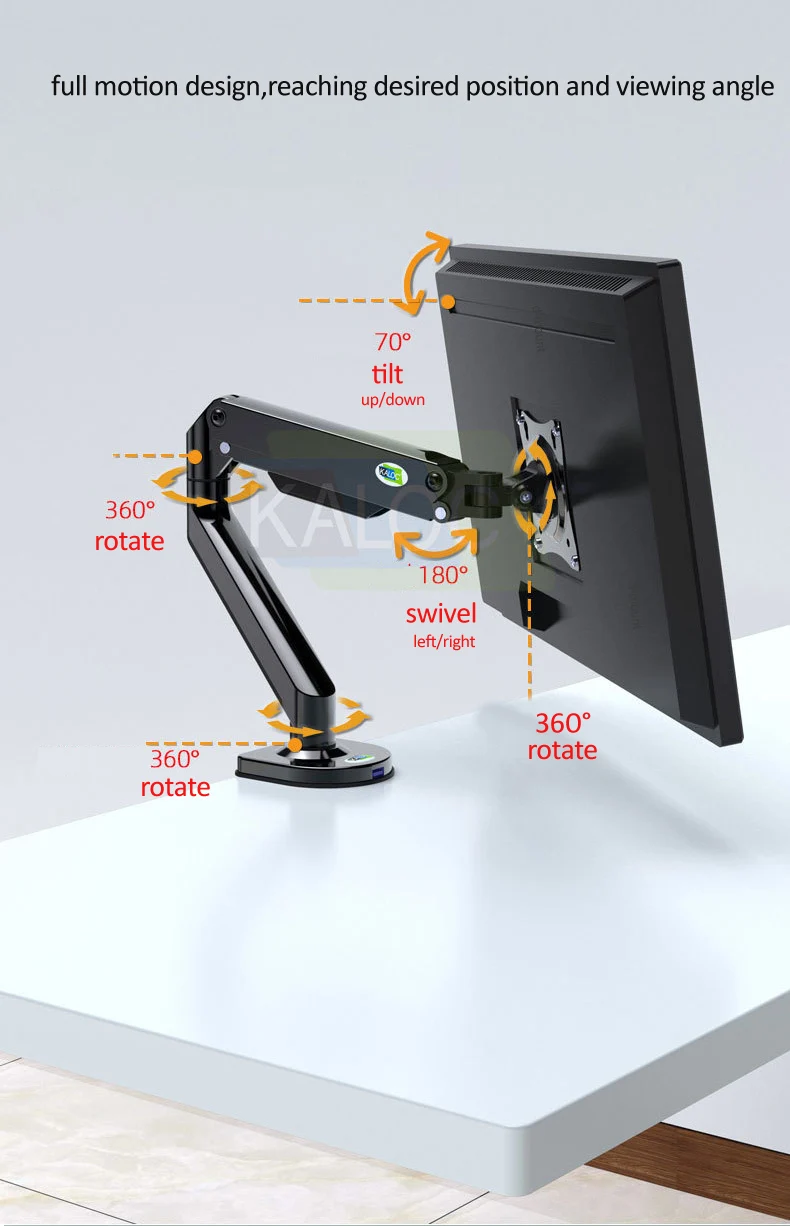 Carga: 2-9kg (asegúrese de que su pantalla esté dentro de este rango, o el resorte de gas del soporte no podría funcionar)