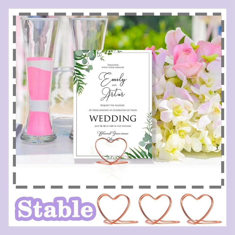 [Fácil de usar] Al usarlo, solo necesita colocar estas tarjetas de números de mesa planas sobre una mesa plana y luego sujetar la tarjeta entre los dos anillos de corazón, el anillo de metal se sujeta, Y la tarjeta no se caerá.