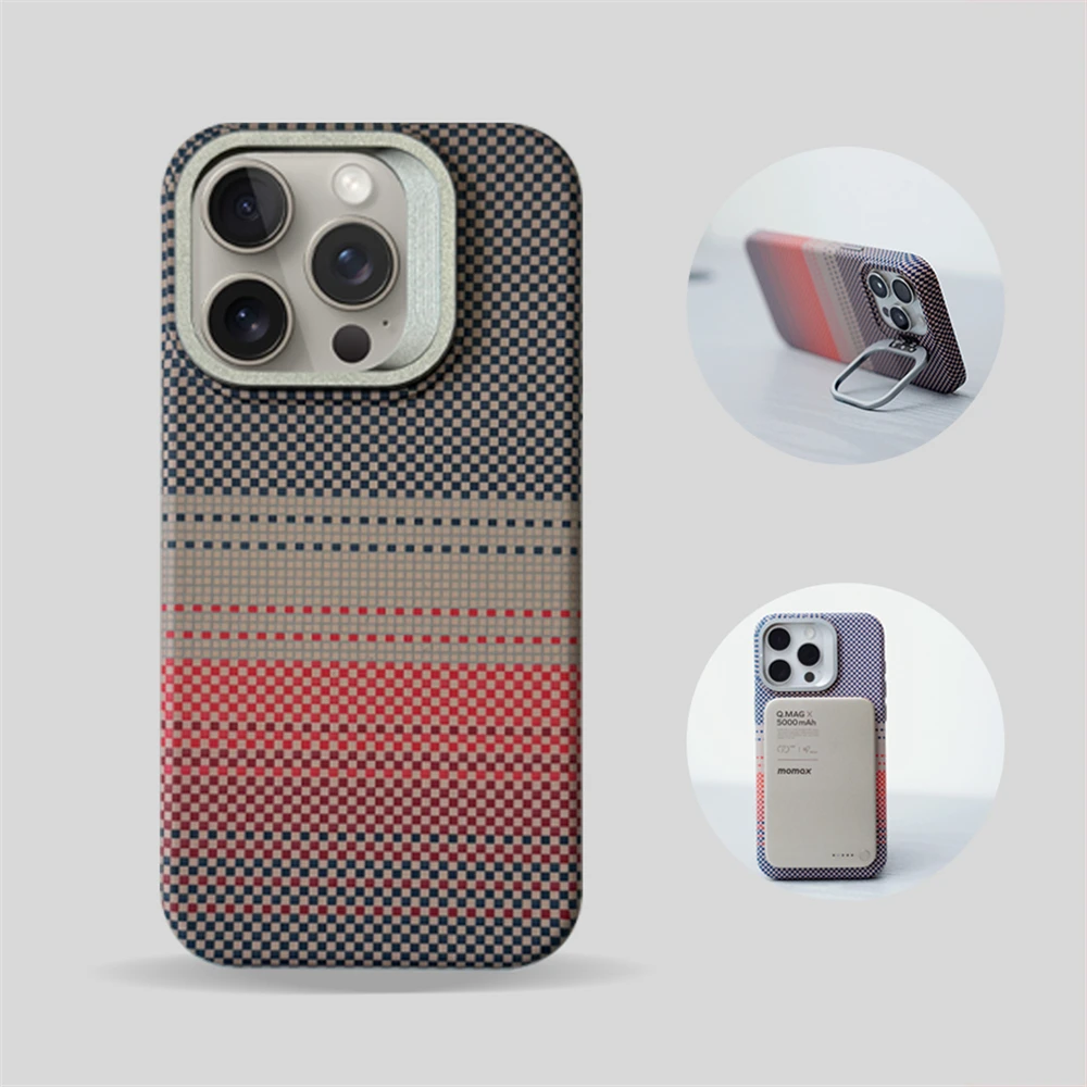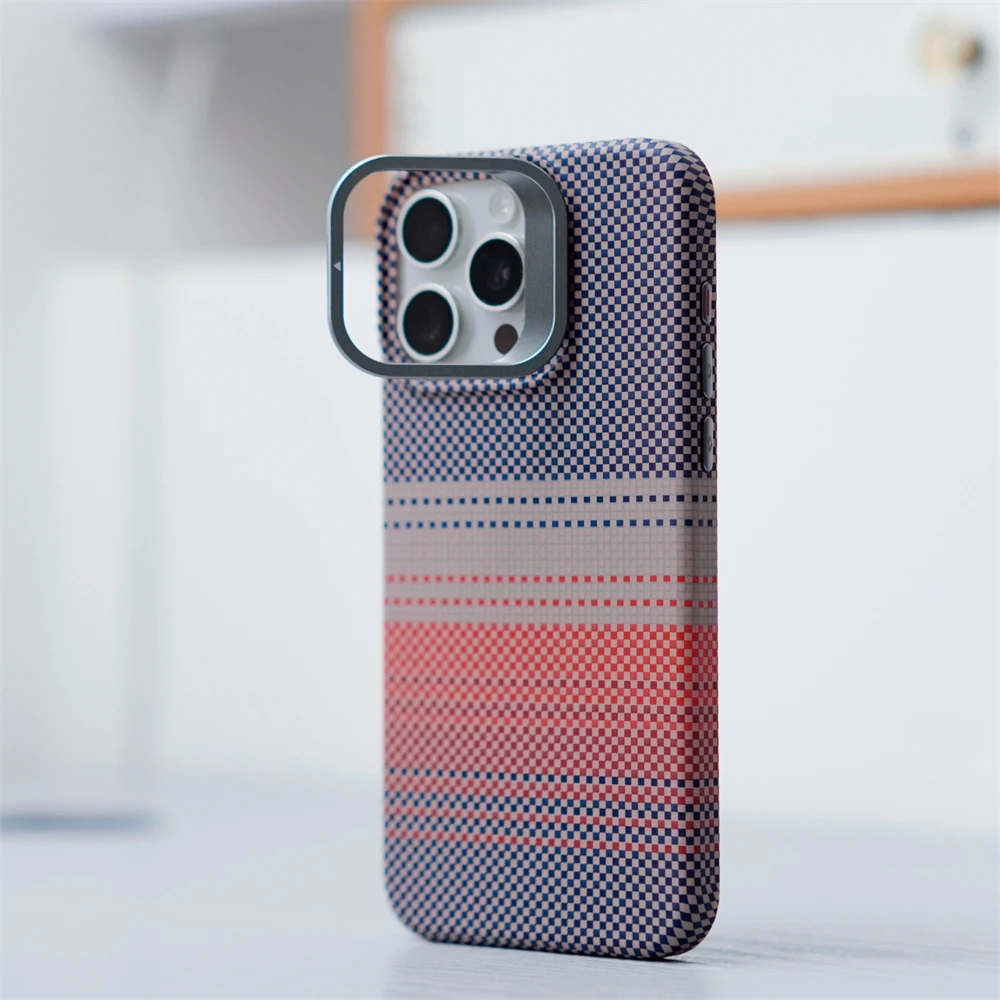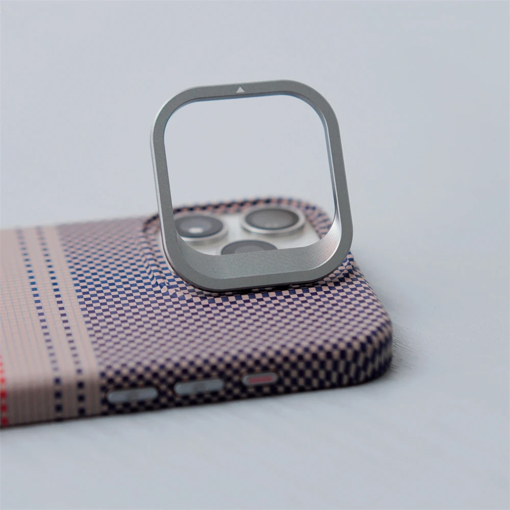 Comprar Soporte de Metal para lente de cámara, funda magnética con patrón de fibra de carbono para iPhone 16 15 14 13 Pro Max Magsafe, cubierta dura para PC con carga inalámbrica