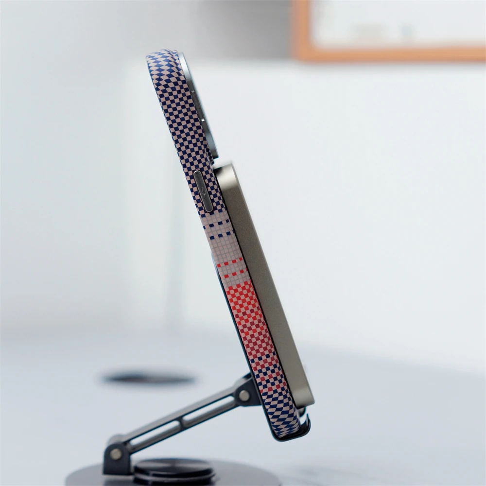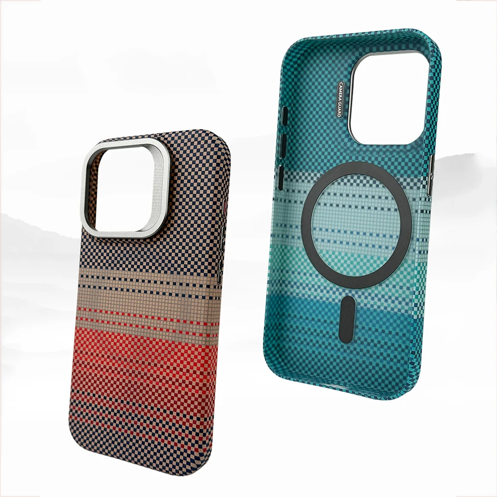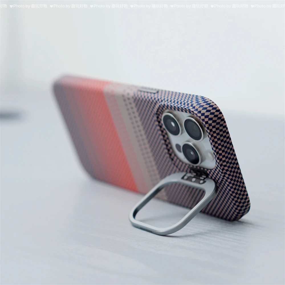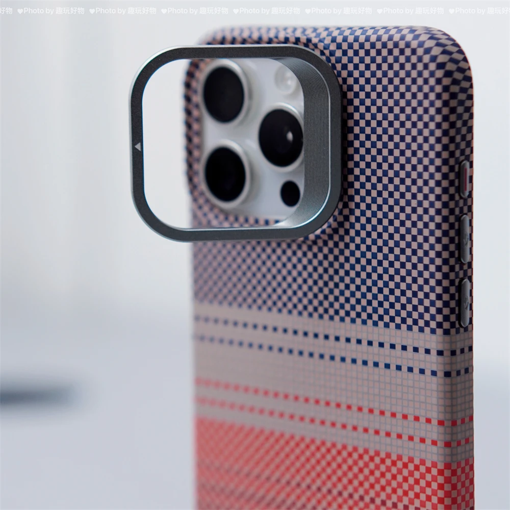 Comprar Soporte de Metal para lente de cámara, funda magnética con patrón de fibra de carbono para iPhone 16 15 14 13 Pro Max Magsafe, cubierta dura para PC con carga inalámbrica