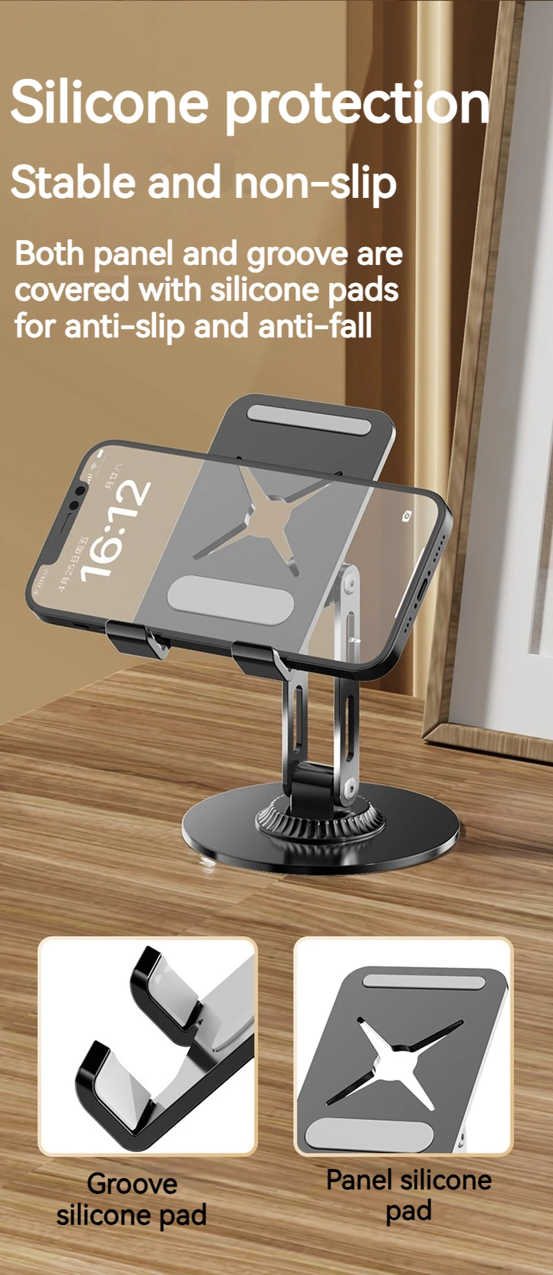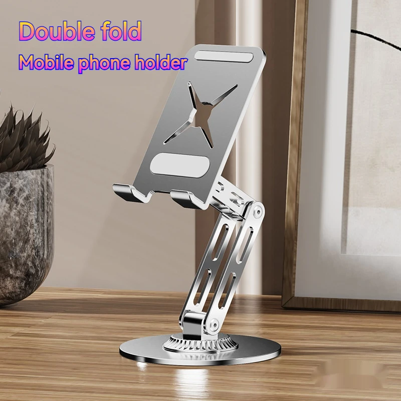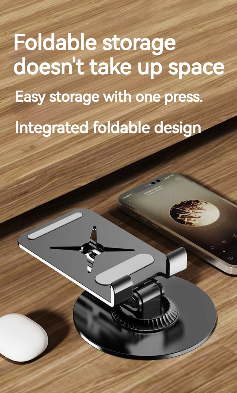 Soporte de metal para tableta y teléfono plegable portátil 360 ° Soporte giratorio para iPhone iPad Samsung Soporte de escritorio multiángulo ajustable