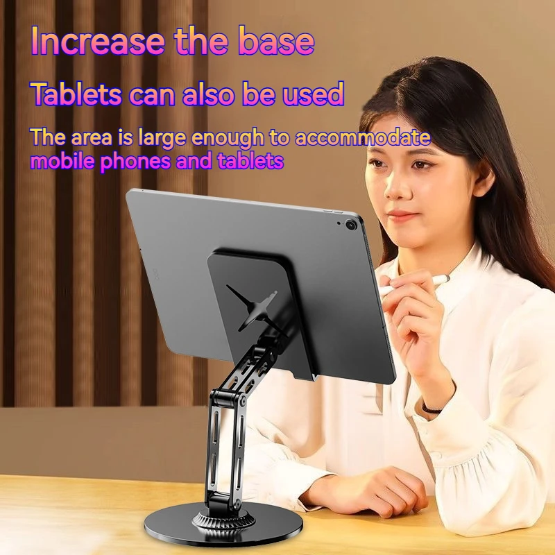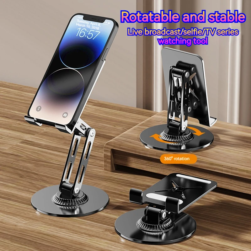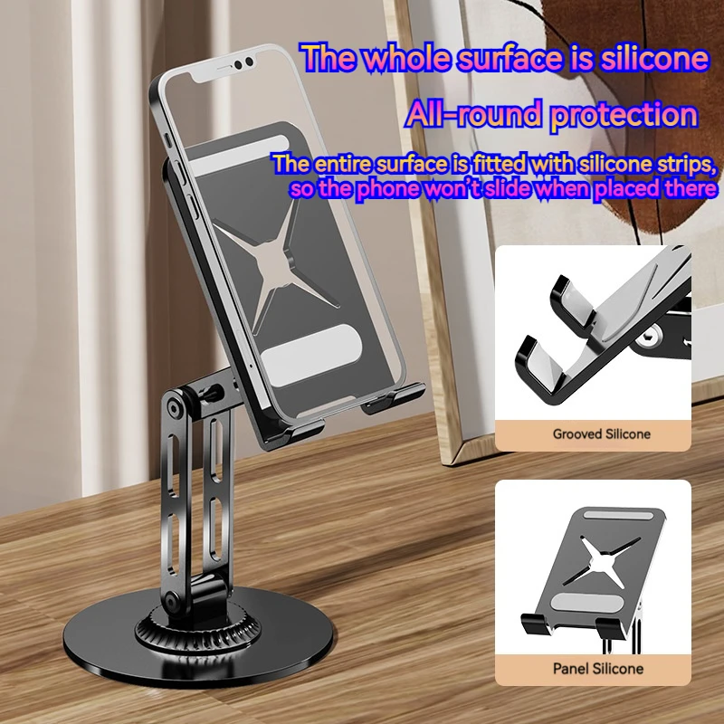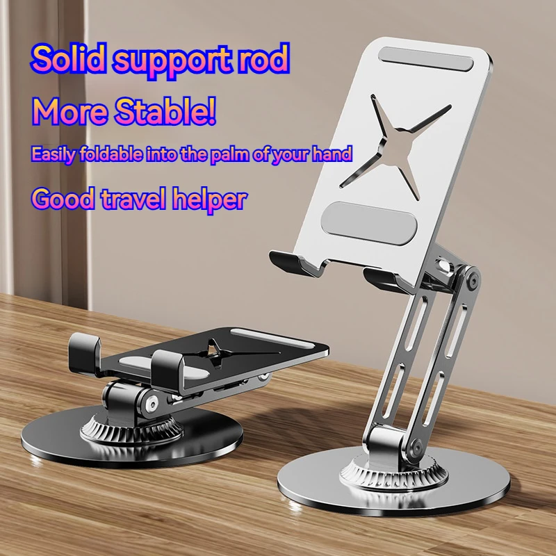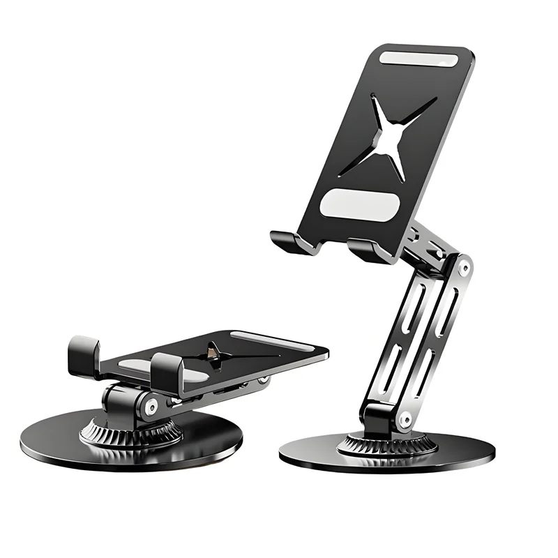 Soporte de metal para tableta y teléfono plegable portátil 360 ° Soporte giratorio para iPhone iPad Samsung Soporte de escritorio multiángulo ajustable