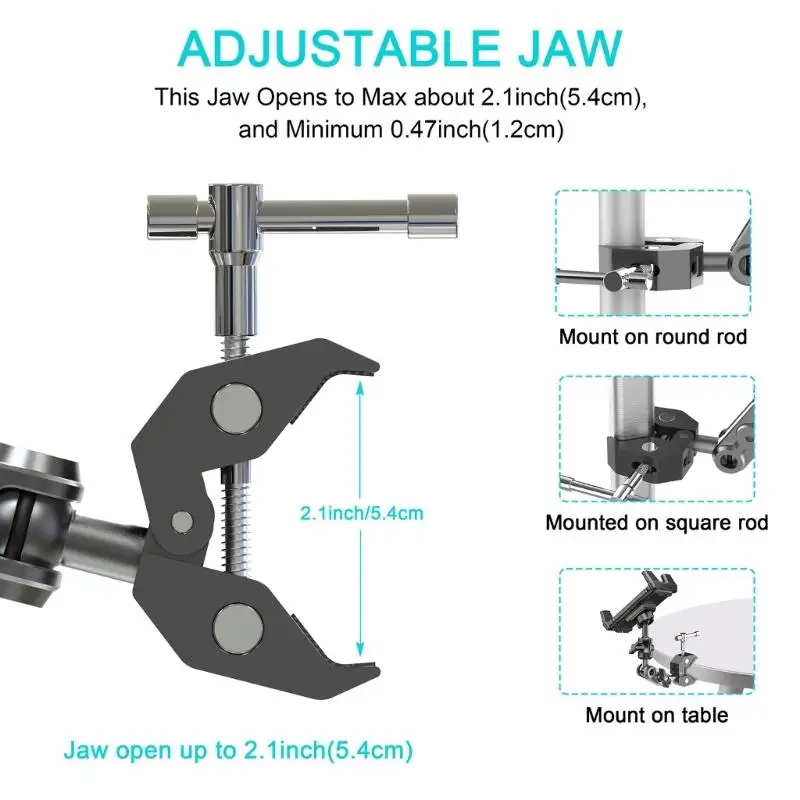 La abrazadera puede garantizar un uso estable.Seleccionado en aluminio.combinado con un mecanismo mejorado, proporcionando una experiencia más estable.