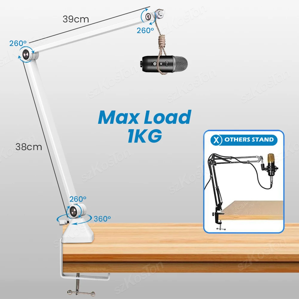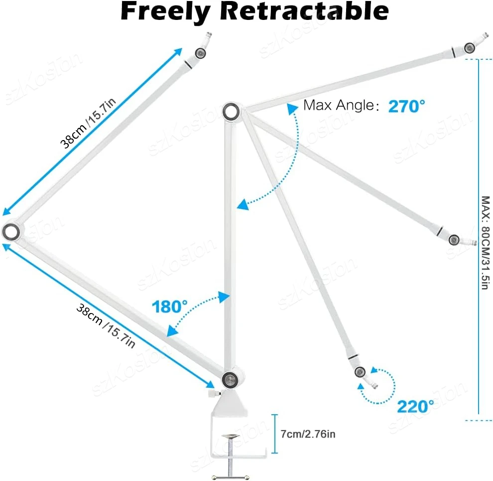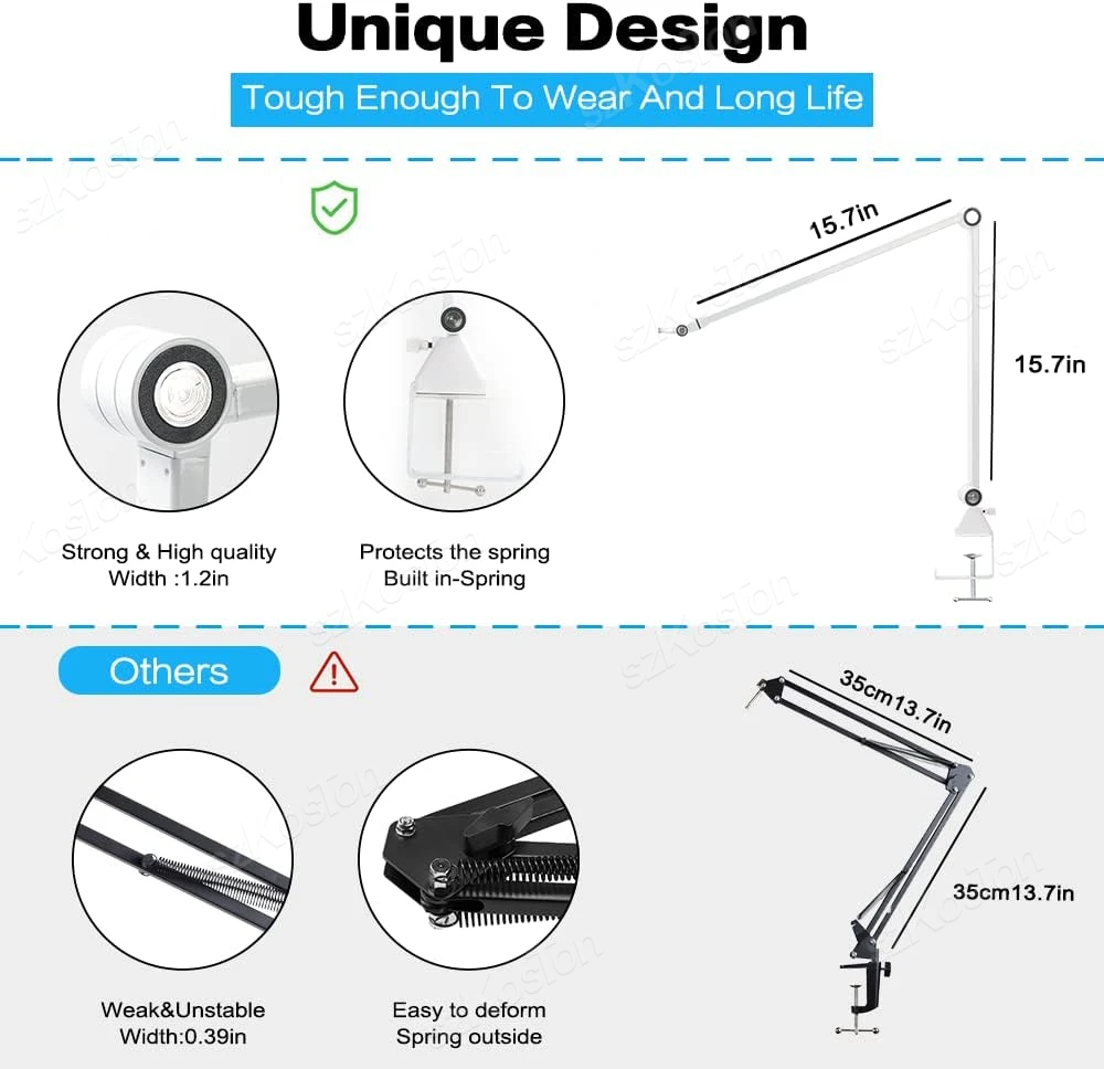 LONGITUD MEJORADA Y POSICIÓN GRATUITA: Este brazo tiene un alcance horizontal máximo de 30 pulgadas y un alcance vertical de 31,5 pulgadas para su comodidad.Te permite colocar el micrófono libremente dentro del rango ajustable y no rebota.Szkoston