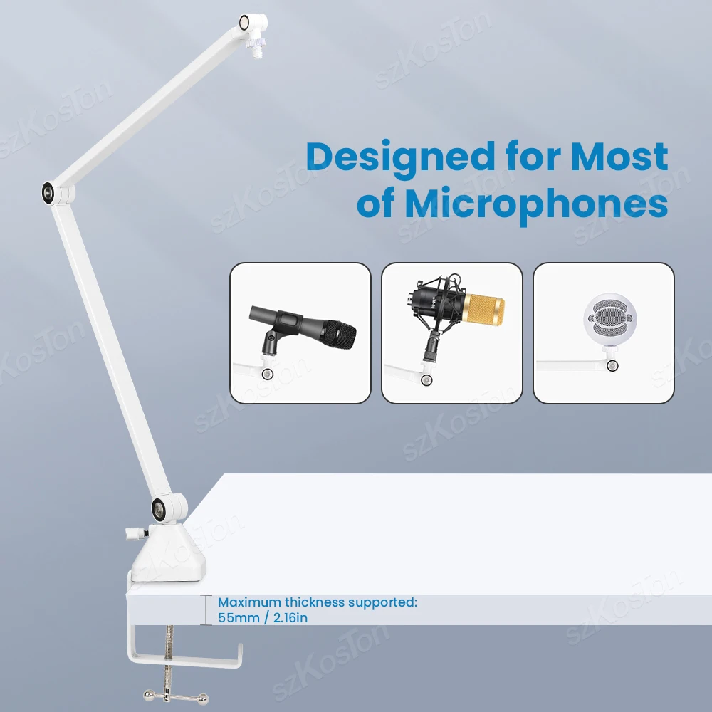 Kits de soporte de brazo de pluma de micrófono con compatibilidad de dos universidades: conector estable de 5/8 compatible con muchos micrófonos como Blue Yeti, Shure SM7B, HyperX Quadcast, Blue Snowball, AT2020, AT2020USB+, AT2035, ATR00-2500-USB, ATR2100-Micrófonos USB.