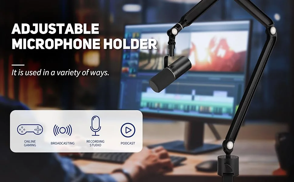 【Brazo de micrófono flexible】El brazo de brazo de metal con peso para SZKOSTON proporciona 5 pivotes con ángulo ajustable (180 ° a 360oC ° ), le permite obtener fácilmente la posición perfecta que desee. Ideal para podcasting, streaming, transmisión, transmisión en vivo y otras grabaciones de voz.