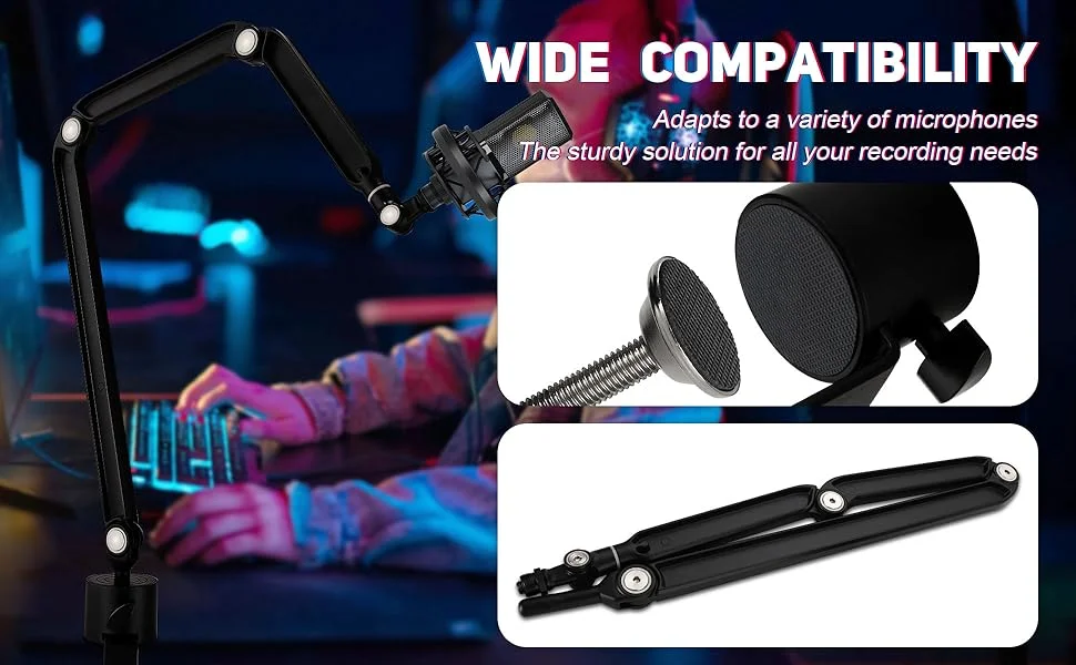 Compatibilidad perfecta: soporte para micrófono con adaptador estándar de 3/8'' a 5/8'', compatible con la mayoría de los micrófonos estándar: HyperX QuadCast,SoloCast,DuoCast,Razer Mini, Blue Snowball,Rode y otros micrófonos.