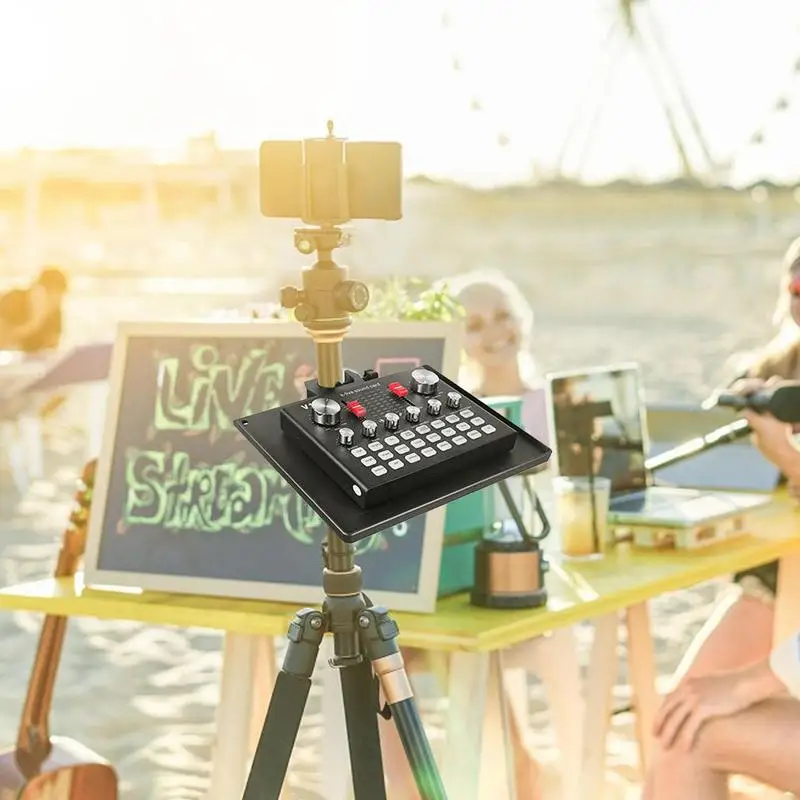 3. Amplia gama de usos: Esta bandeja de tarjeta de sonido es perfecta para una gama de soportes de transmisión en vivo, soportes de micrófono y soportes de fotografía, proporcionándole una opción fiable y adecuada para todas sus necesidades de audio.