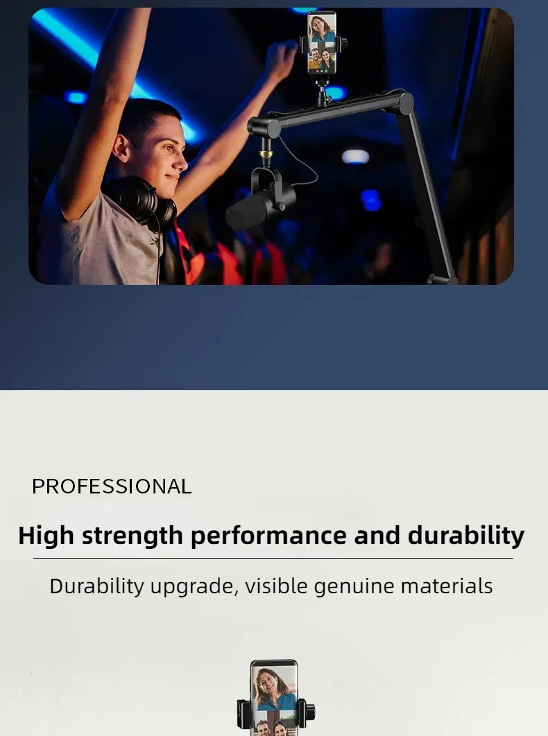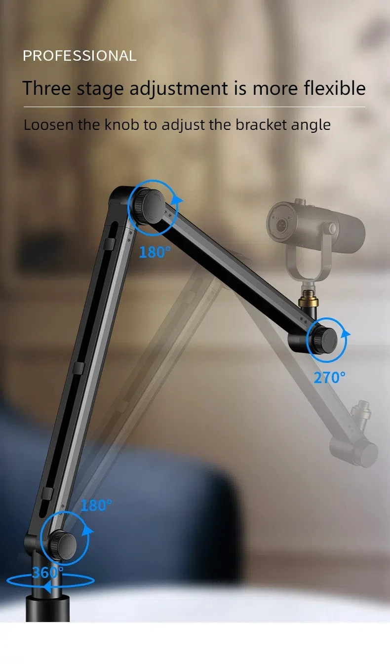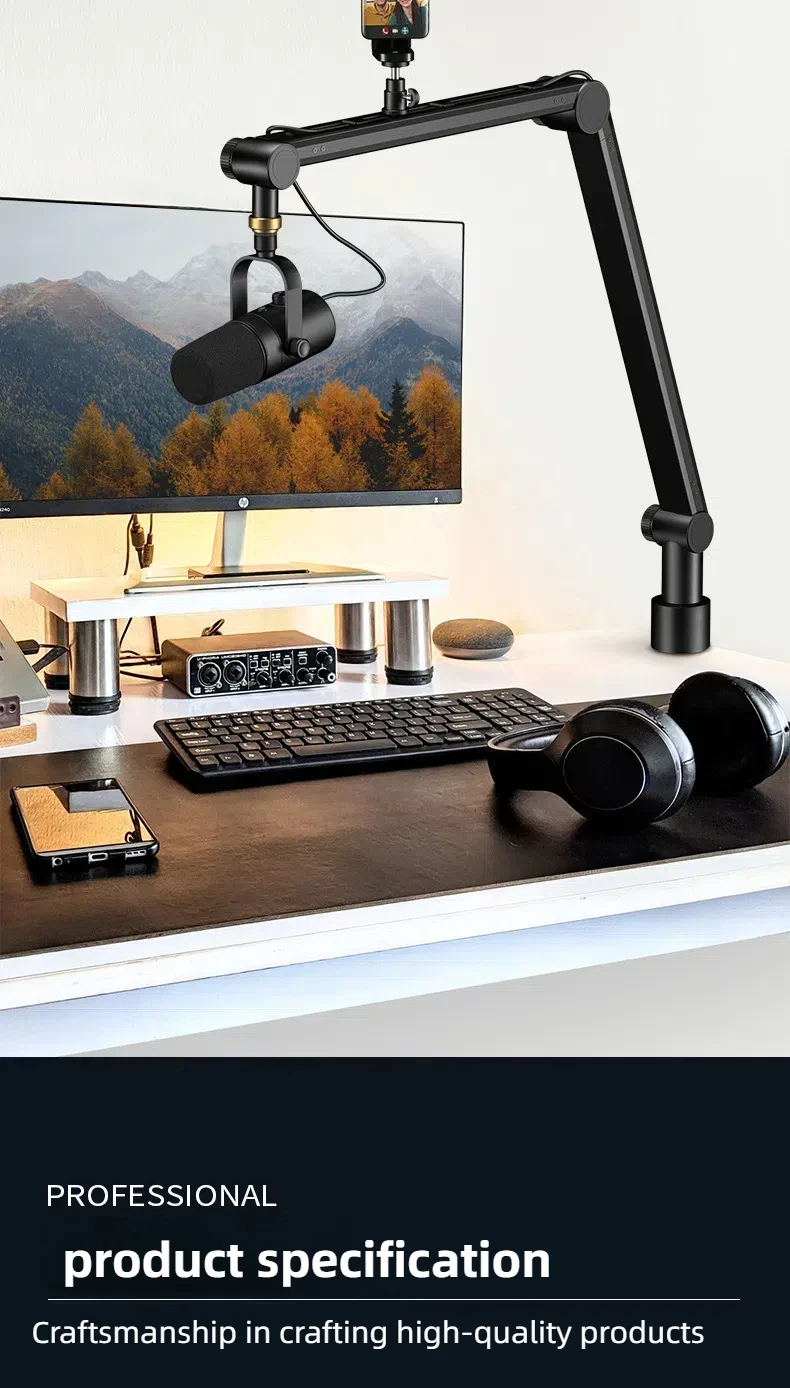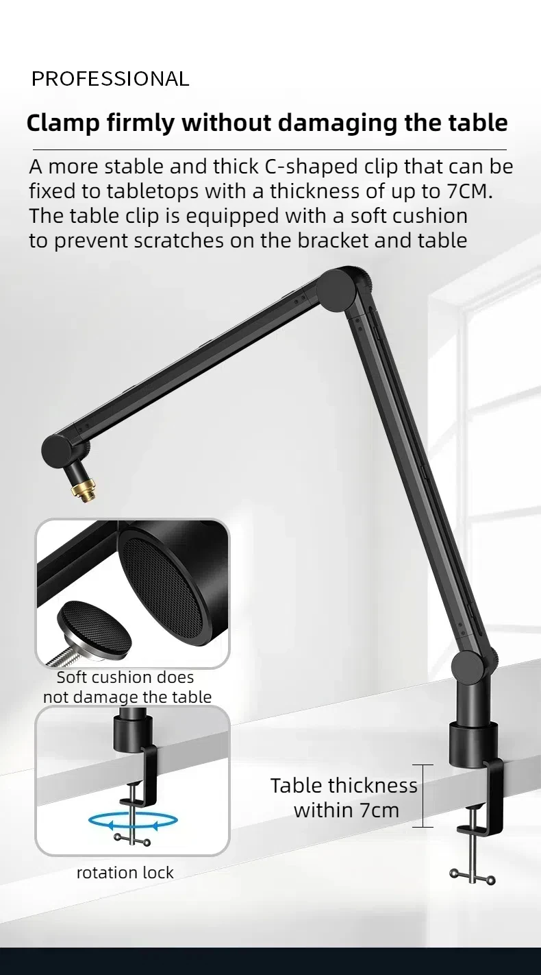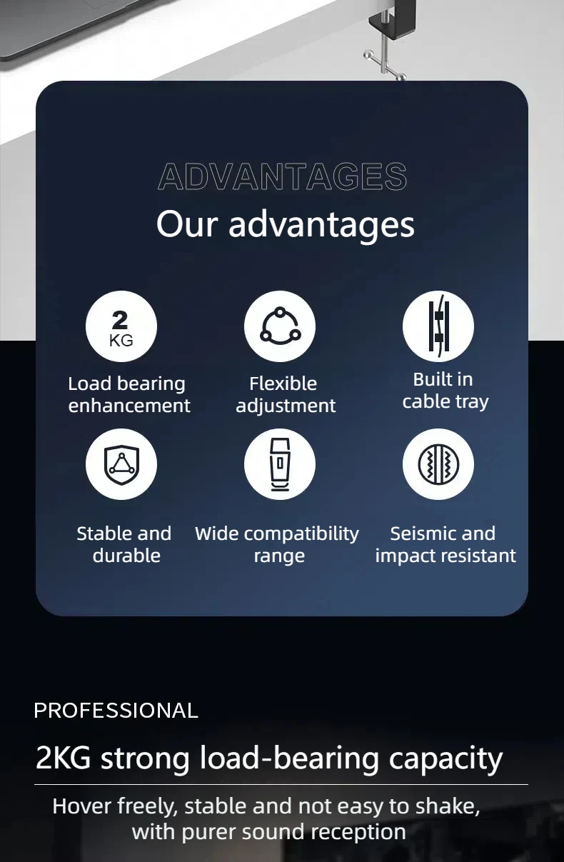 Soporte de micrófono con brazo de pluma, brazo de soporte de micrófono con suspensión de Metal ajustable para transmisión de juegos, con abrazadera de escritorio y adaptador de 3/8 a 5/8