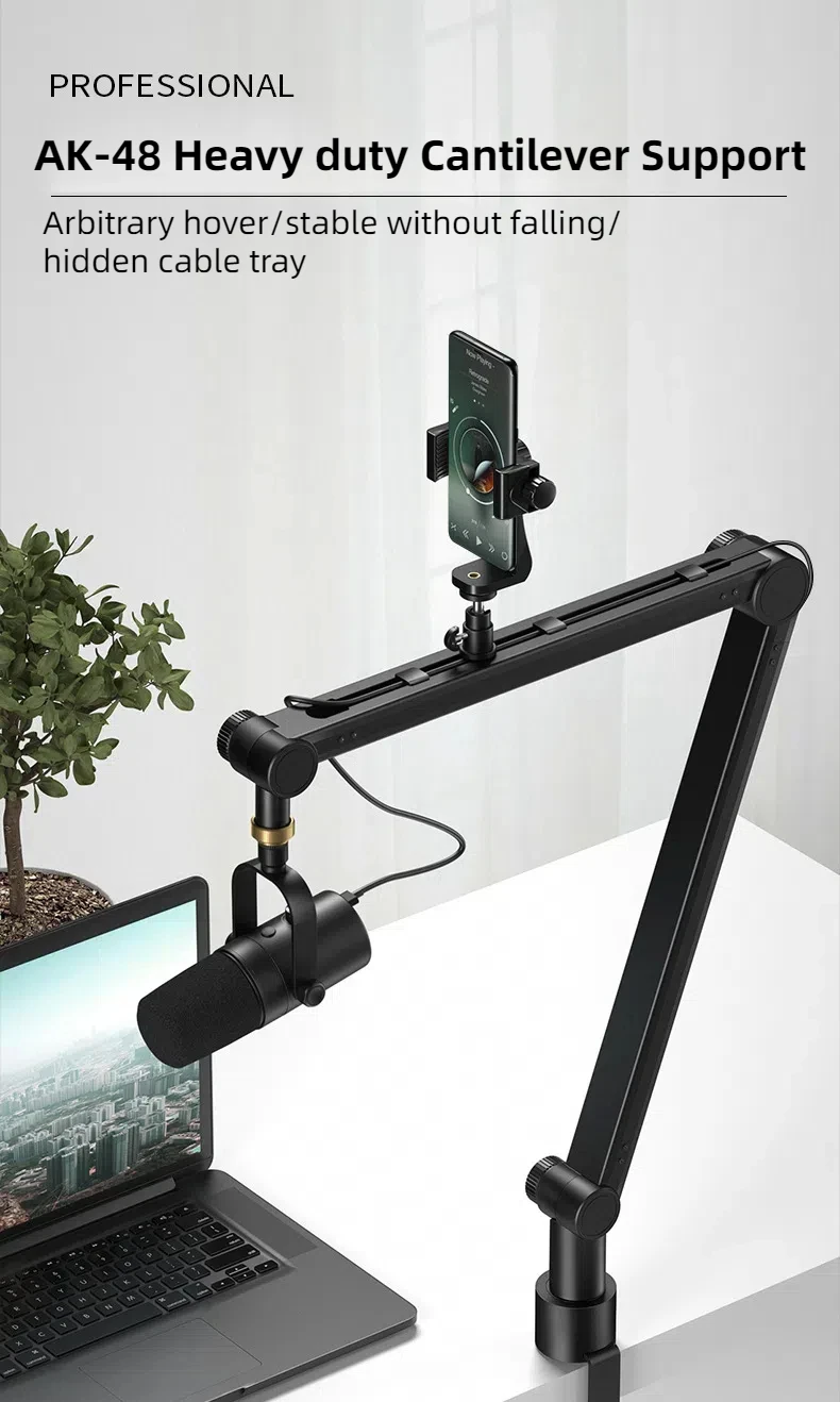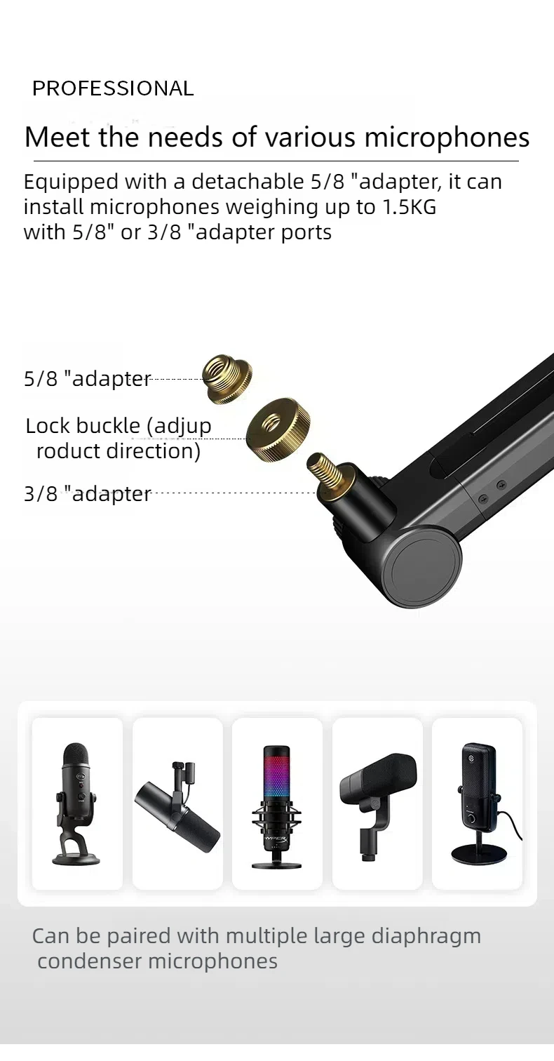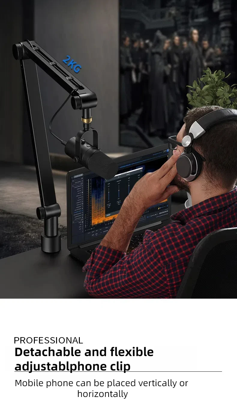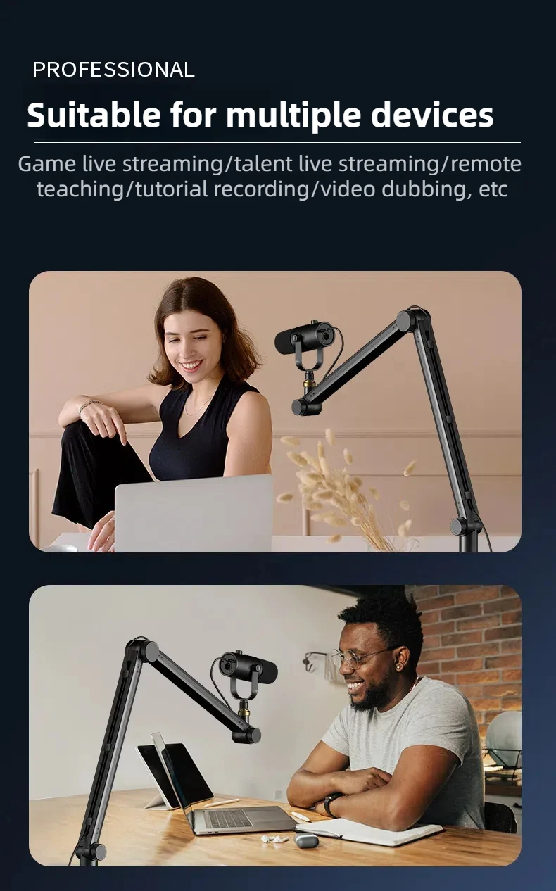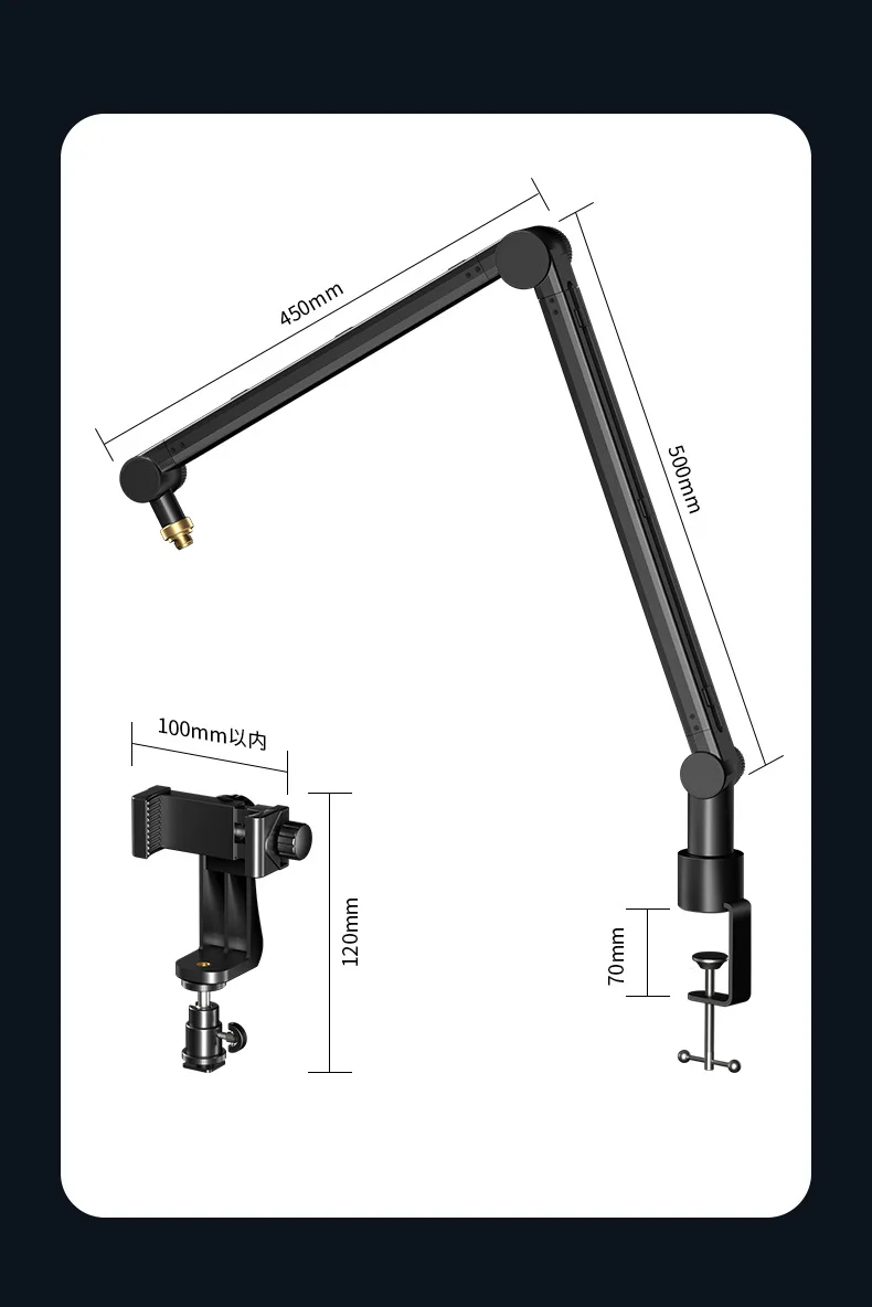 Soporte de micrófono con brazo de pluma, brazo de soporte de micrófono con suspensión de Metal ajustable para transmisión de juegos, con abrazadera de escritorio y adaptador de 3/8 a 5/8