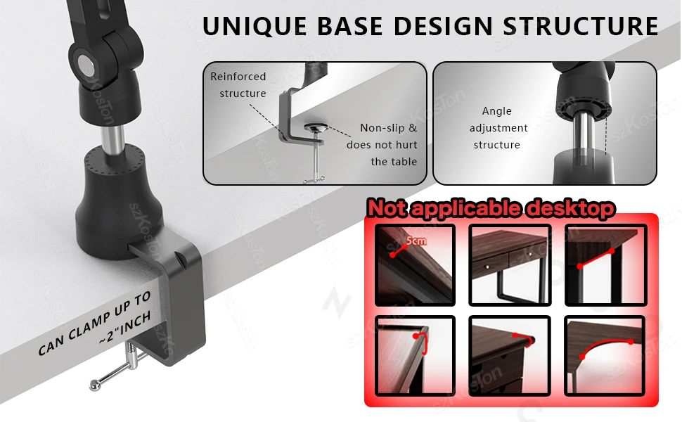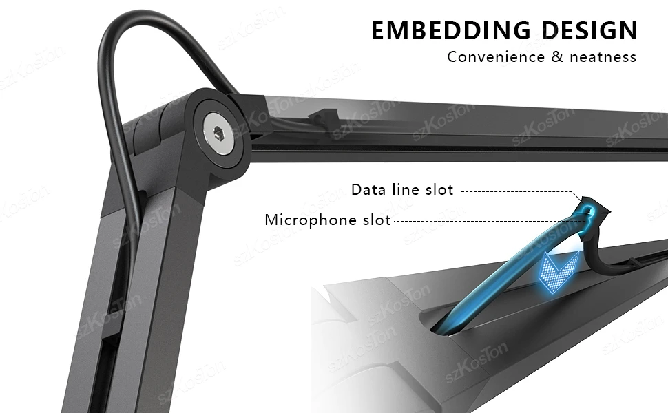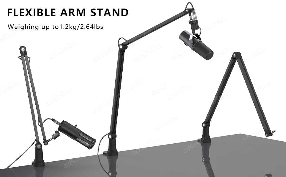 【Ahorro de espacio】El brazo del micrófono es plegable y fácil de transportar.No es necesario quitarlo de su escritorio cuando no esté en uso, simplemente doble el brazo articulado hacia arriba, ahorrando espacio de almacenamiento.Szkoston
