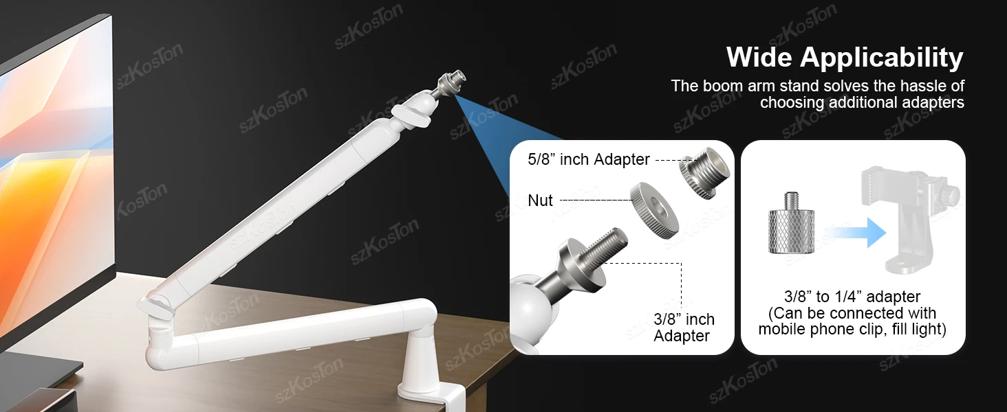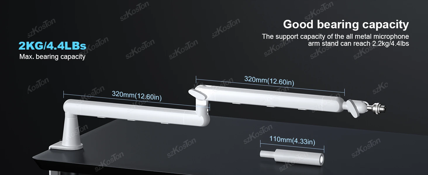 [Adaptado a la mayoría de los ángulos] El brazo de brazo del soporte para micrófono se puede extender hasta 29 pulgadas y ajustar hacia abajo en 220 grados y horizontalmente en 360 grados.Puede capturar el audio decente con facilidad utilizando la capacidad de ajuste integral del soporte del micrófono.Szkoston