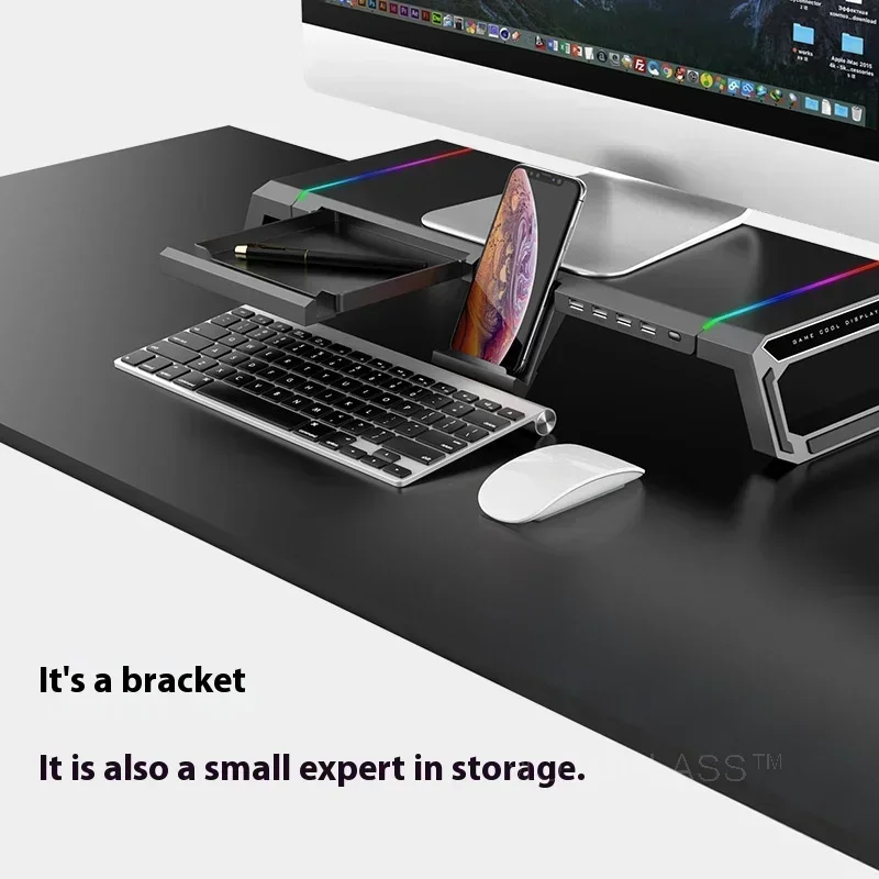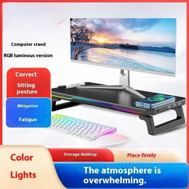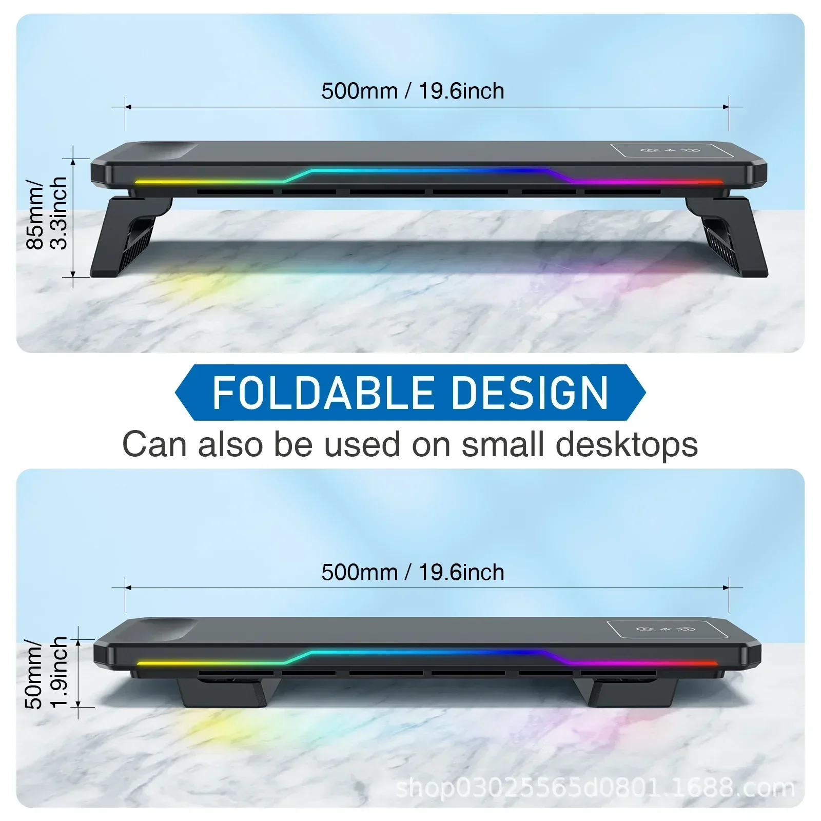 Soporte de Monitor ajustable, concentrador de carga inalámbrica con luz LED para ordenador, escritorio de oficina, soporte ergonómico para ordenador portátil de altura ajustable