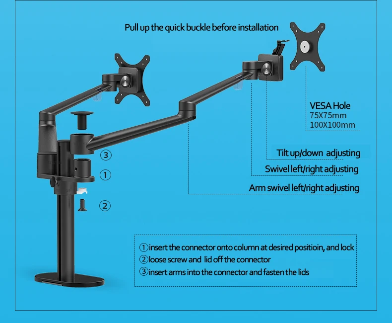 Comprar Soporte de Monitor de aluminio con brazo de movimiento completo, base de altura ajustable para pantalla Dual de 17-32 ", para escritorio y TV, OL-2, nuevo, 2018