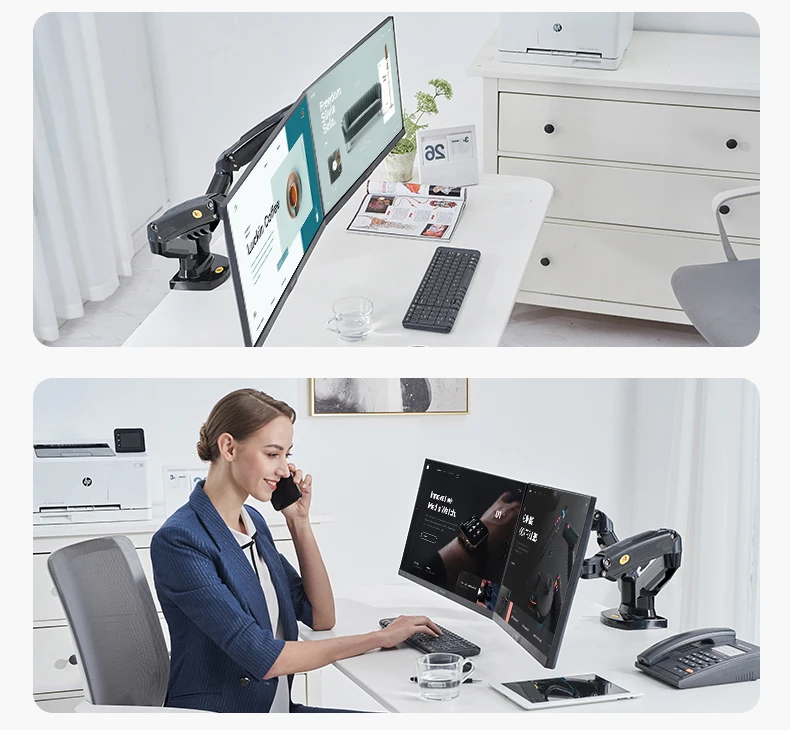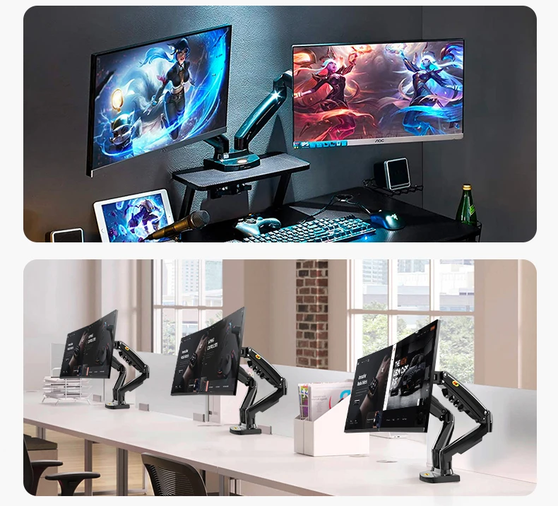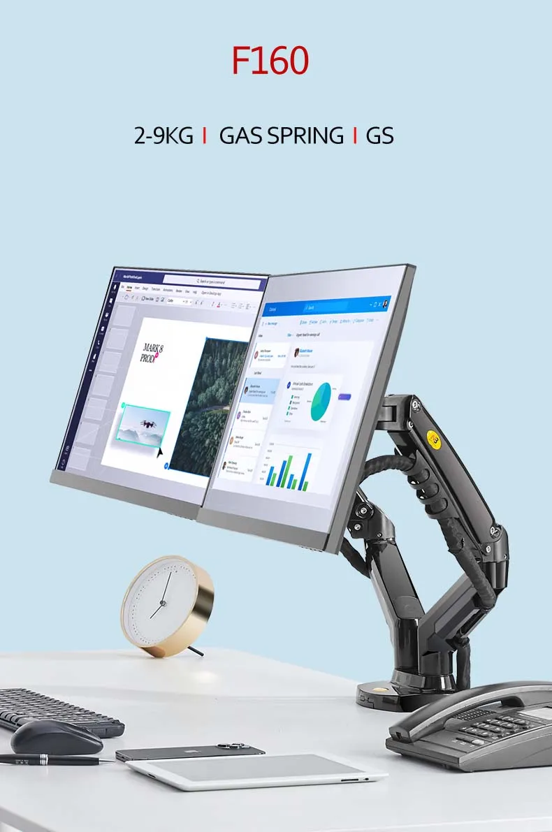 Comprar Soporte de monitor doble NB F160, soporte para USB3.0 de 27 pulgadas, 2-9KG, sin agujero, prensa de aire, puntal de gas, montaje de tv, pantalla dual, rotación de 360 grados, escritorio