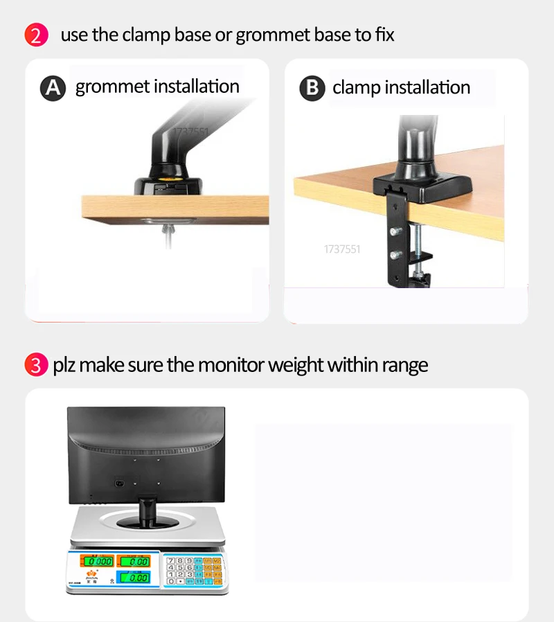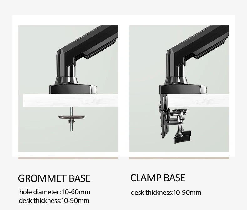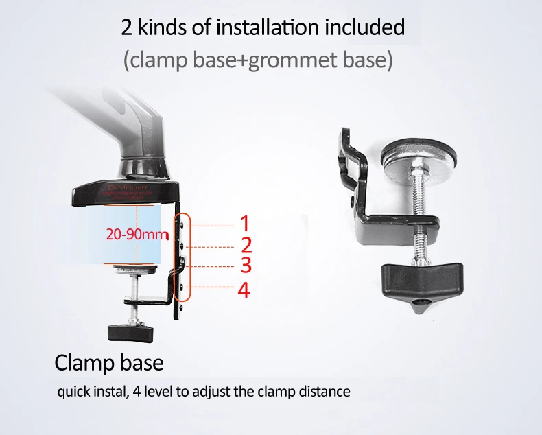Instalación de abrazadera: adecuado para grosor de escritorio en 10-90mm